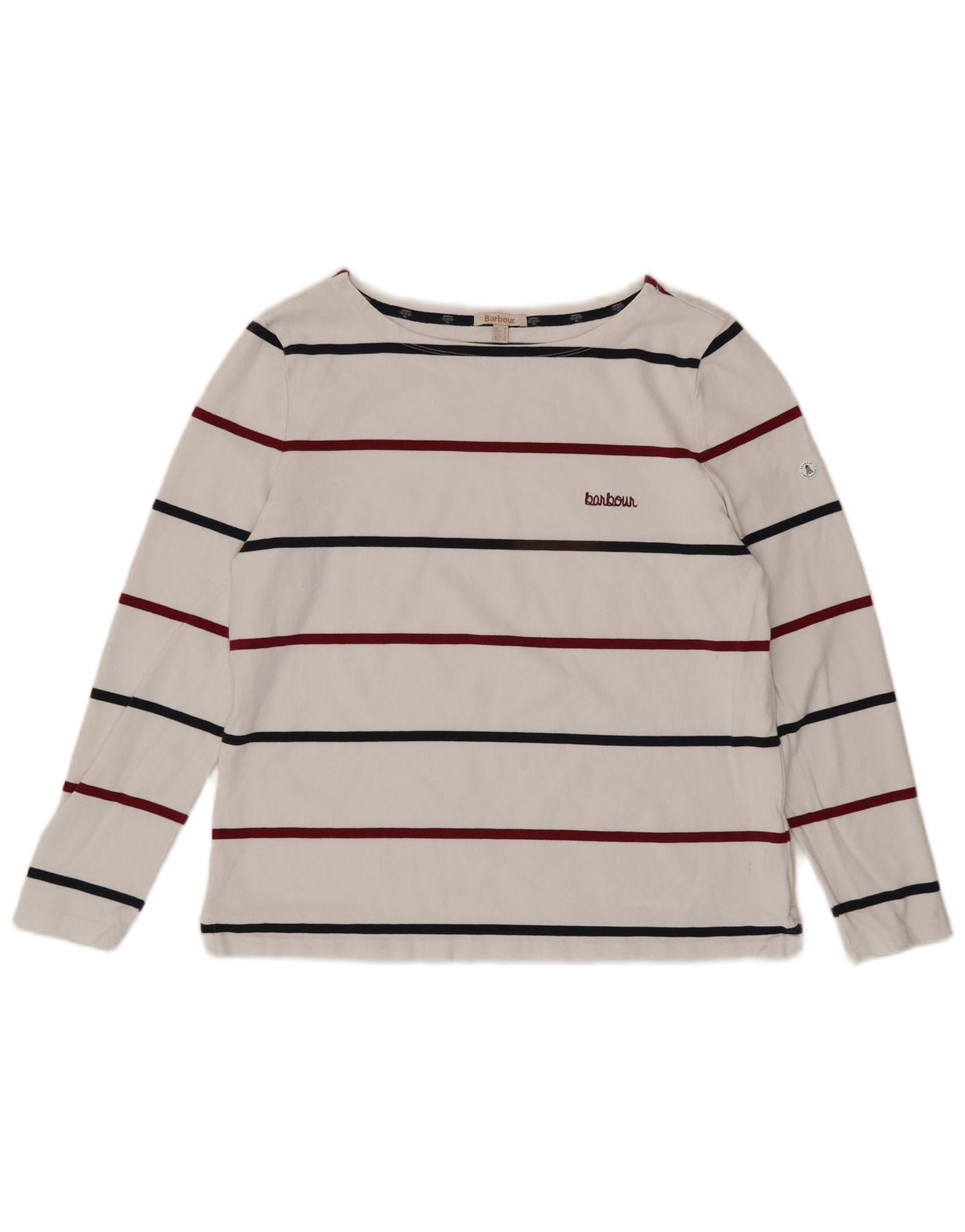 BARBOUR Womens Top Long Sleeve UK 16 Large White Striped Cotton