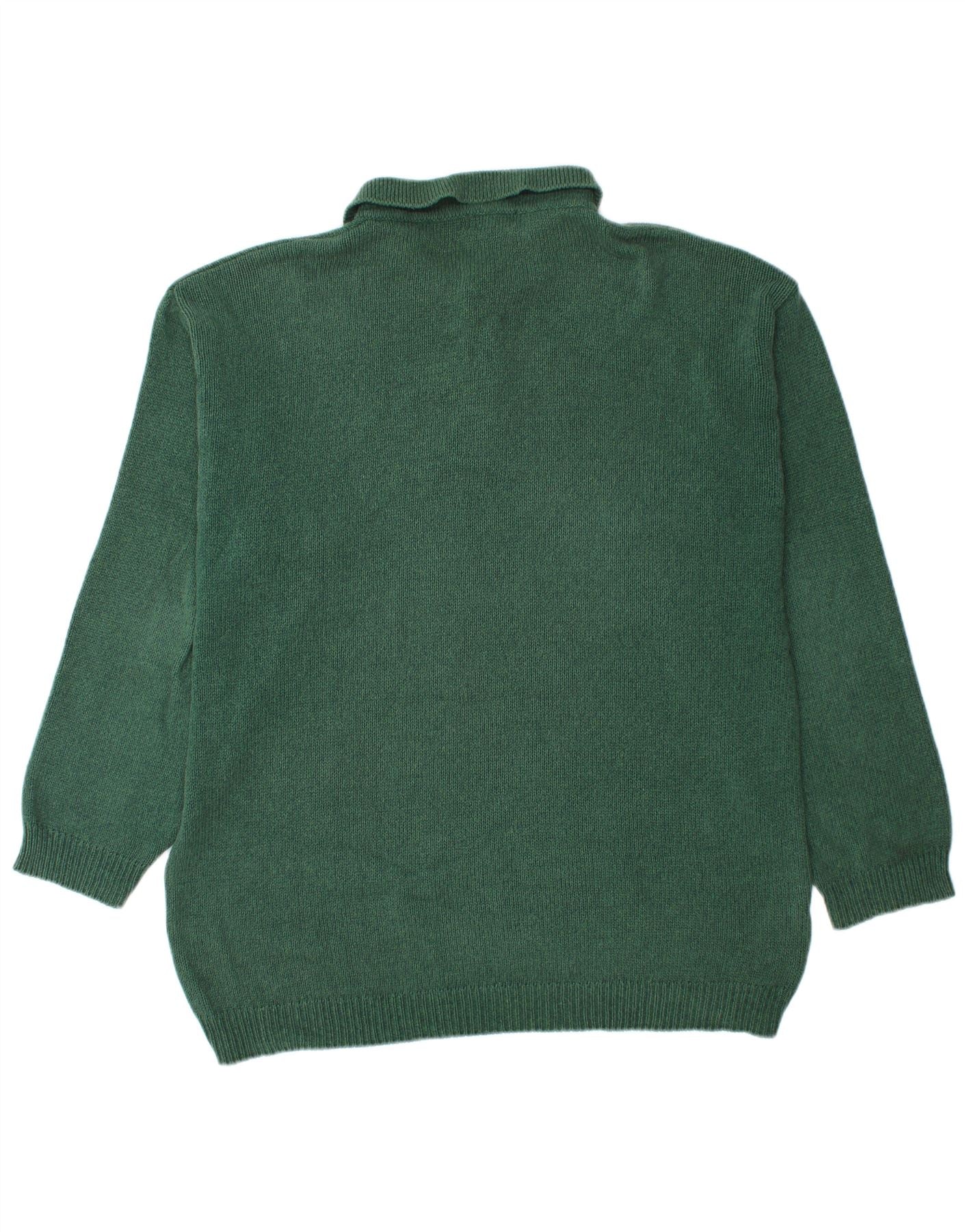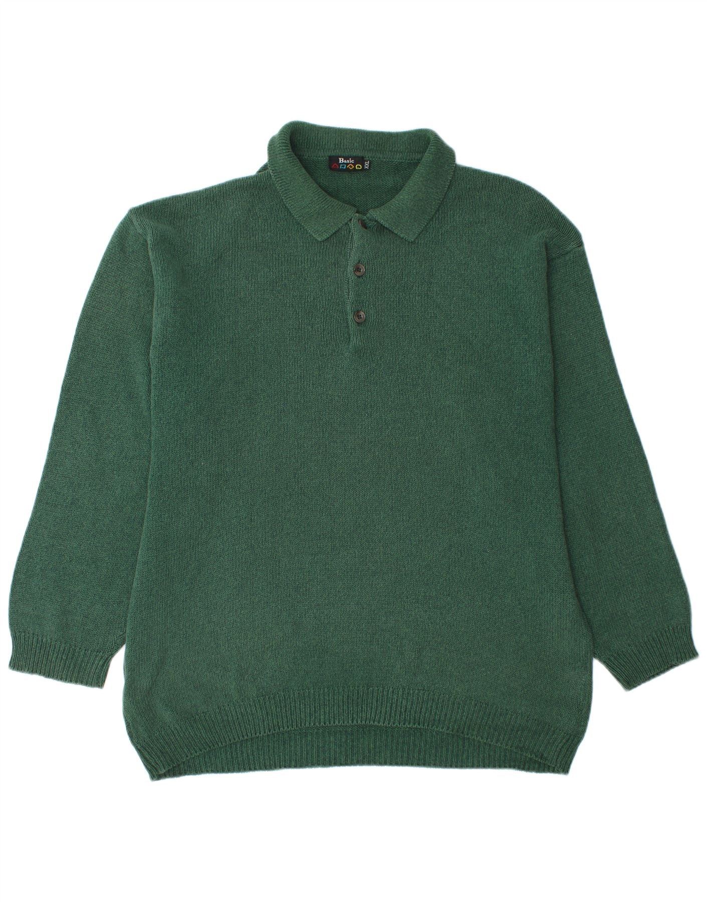 BASIC Mens Polo Neck Jumper Sweater 2XL Green Cotton