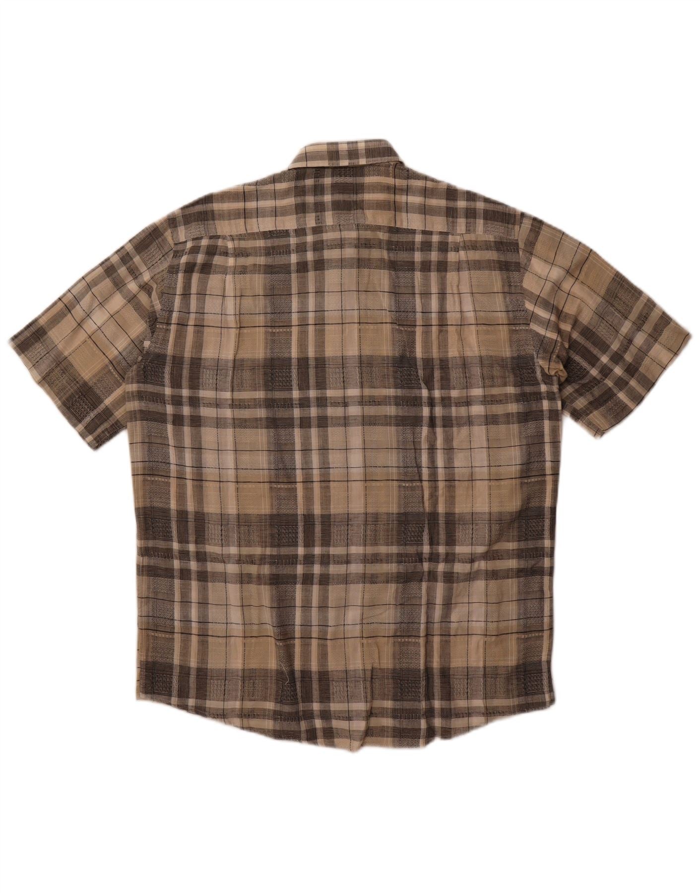 Belmonte Mens Short Sleeve Shirt Size 42 Large Beige Check Cotton