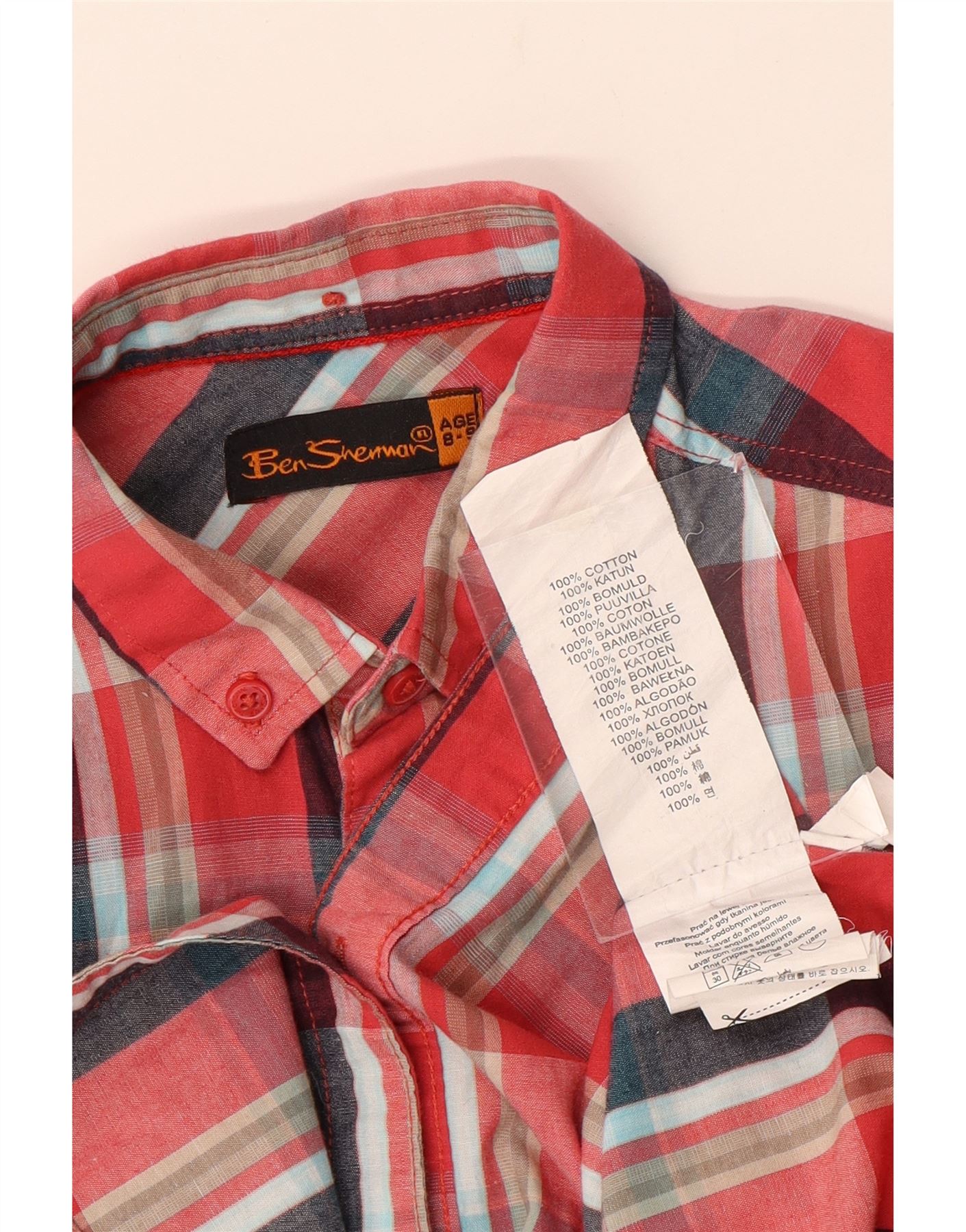 BEN SHERMAN Boys Short Sleeve Shirt 8-9 Years Red Check Cotton