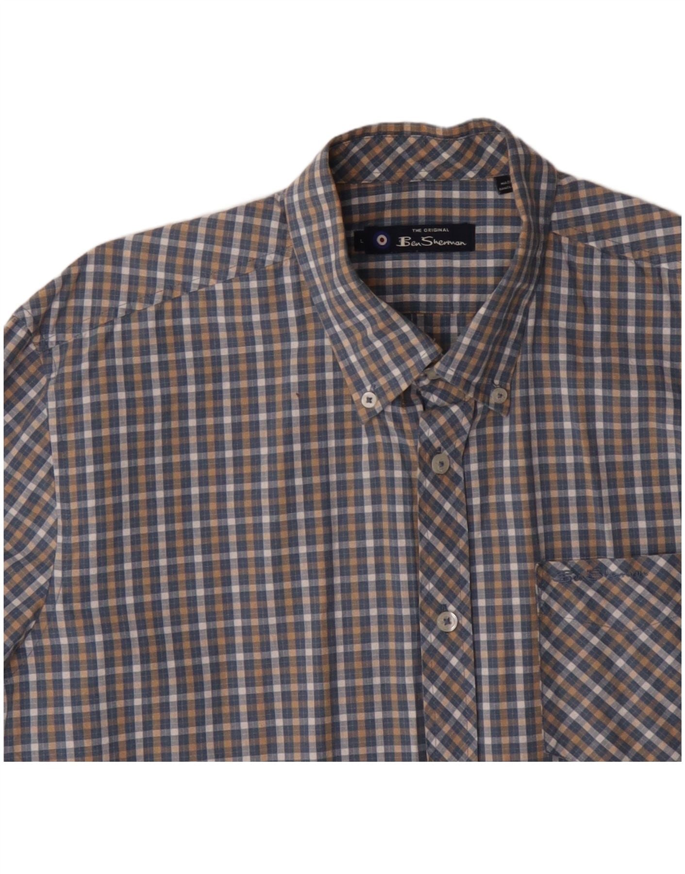 BEN SHERMAN Mens Shirt Large Blue Check Cotton