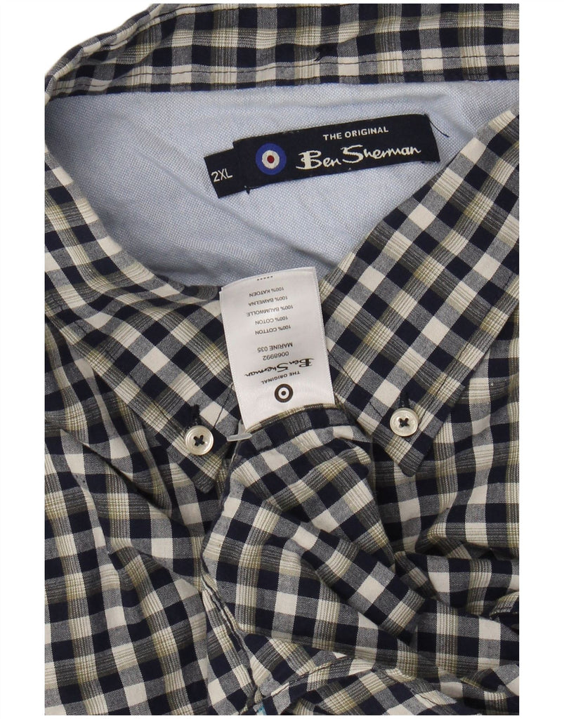 BEN SHERMAN Mens Short Sleeve Shirt 2XL Navy Blue Gingham Cotton