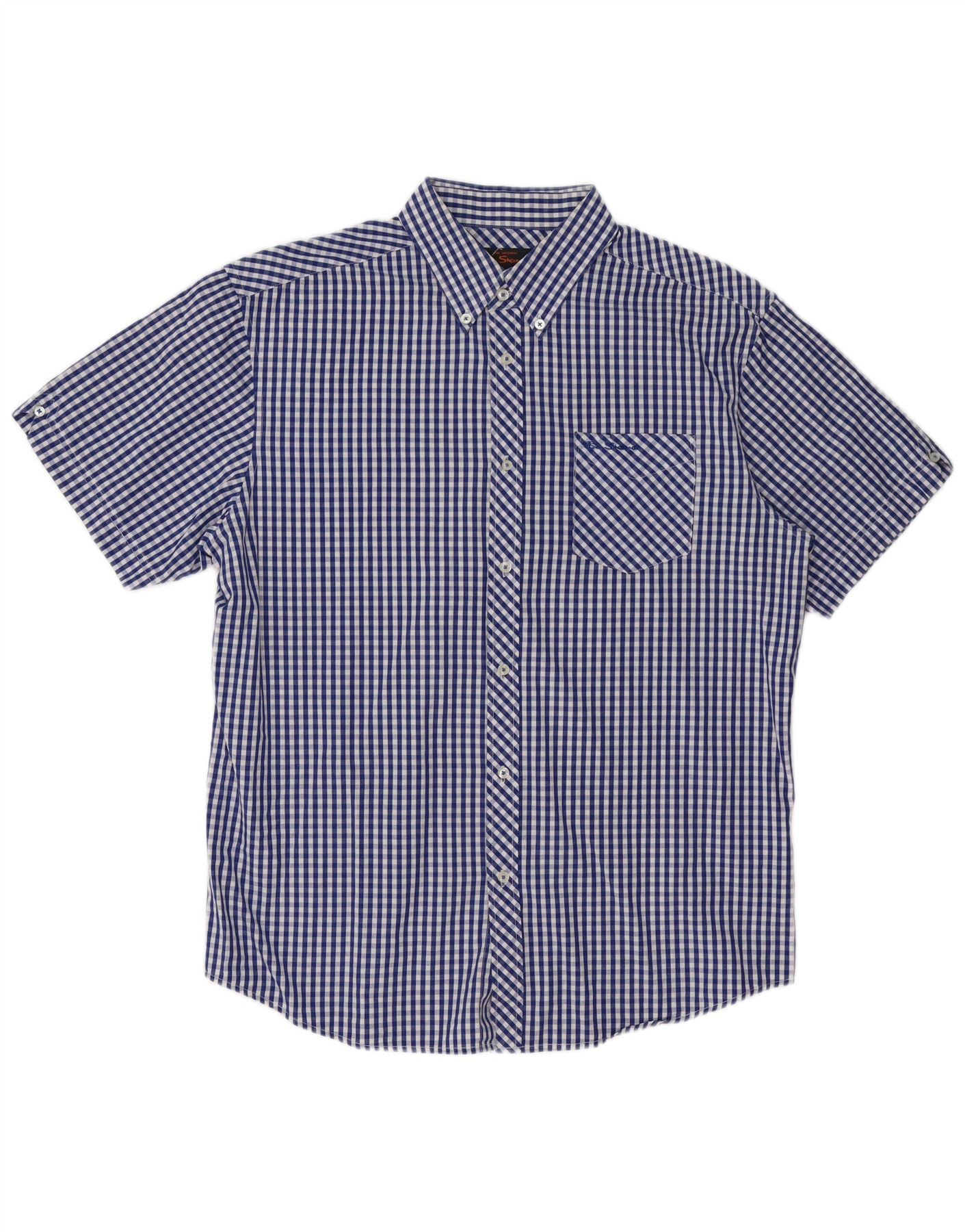 Home > Vintage Ben Sherman Clothing > Men's > BEN SHERMAN Mens Short Sleeve Shirt XL Blue Gingham Cotton