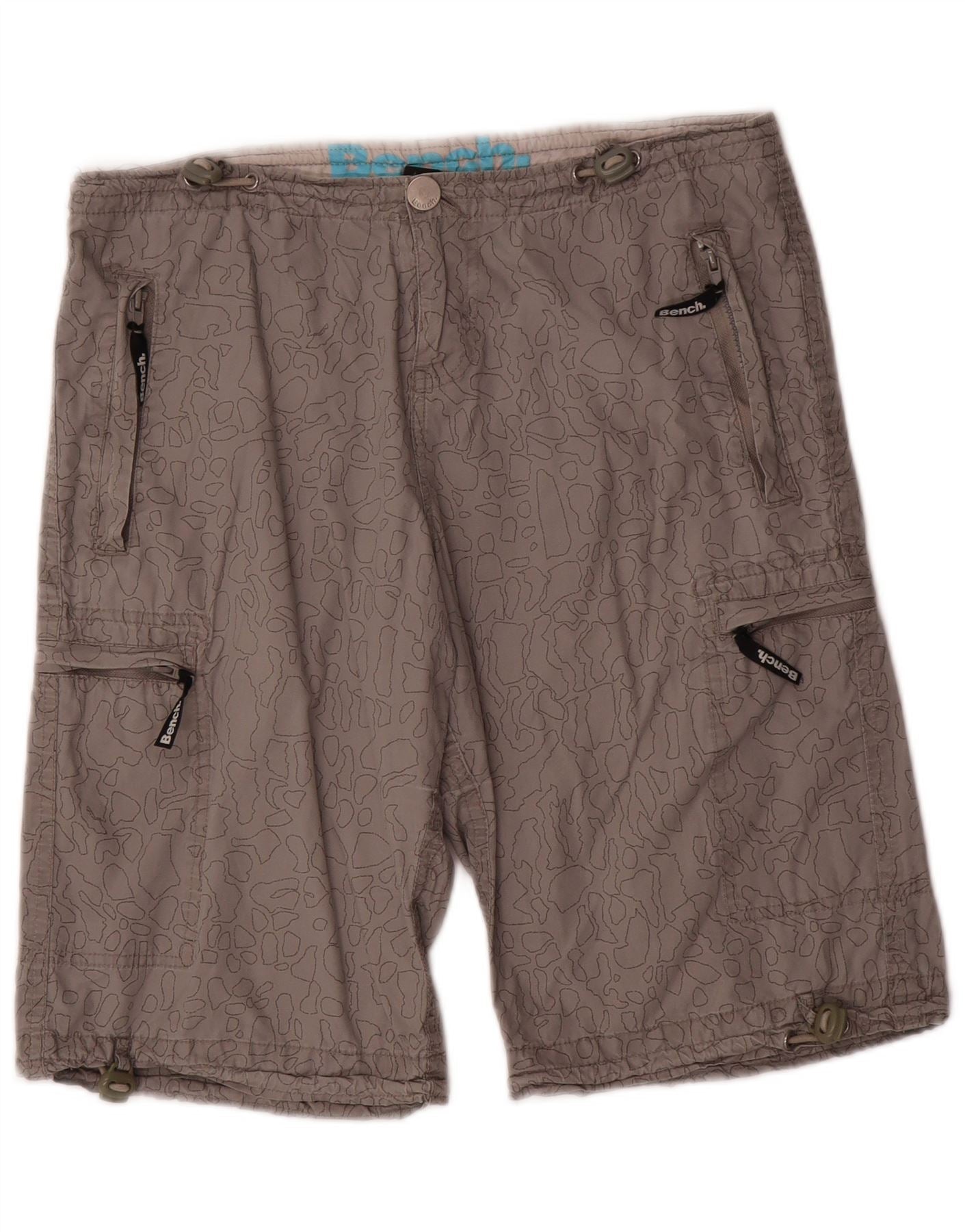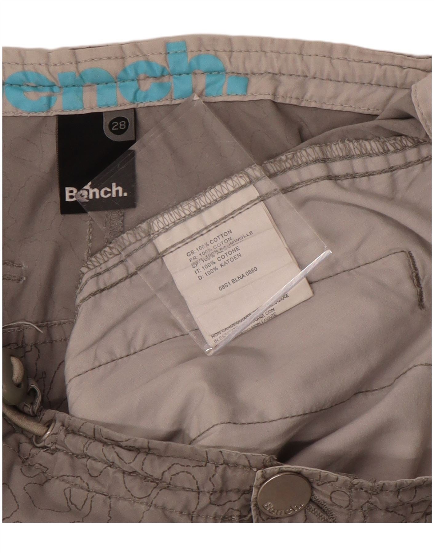 BENCH Mens Cargo Shorts W28 Small Grey Geometric Cotton
