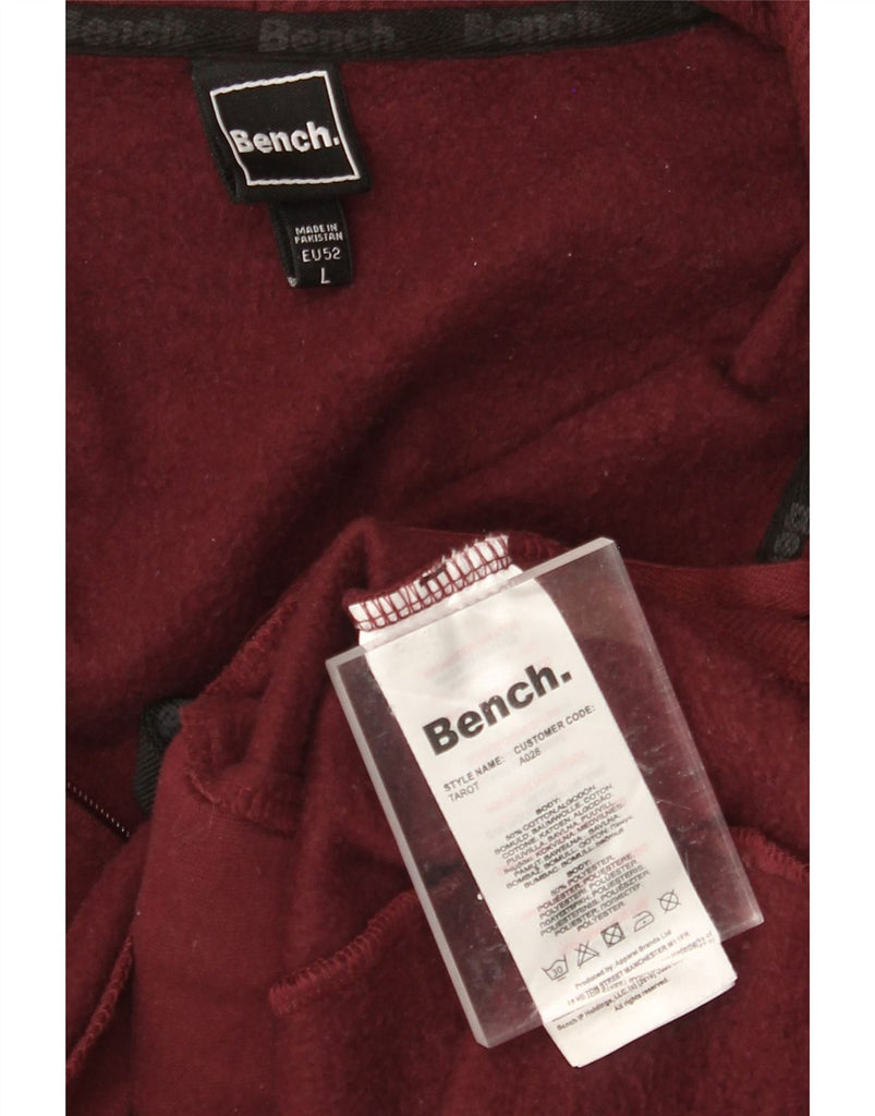 BENCH Mens Graphic Zip Hoodie Sweater EU 52 Large Burgundy Cotton