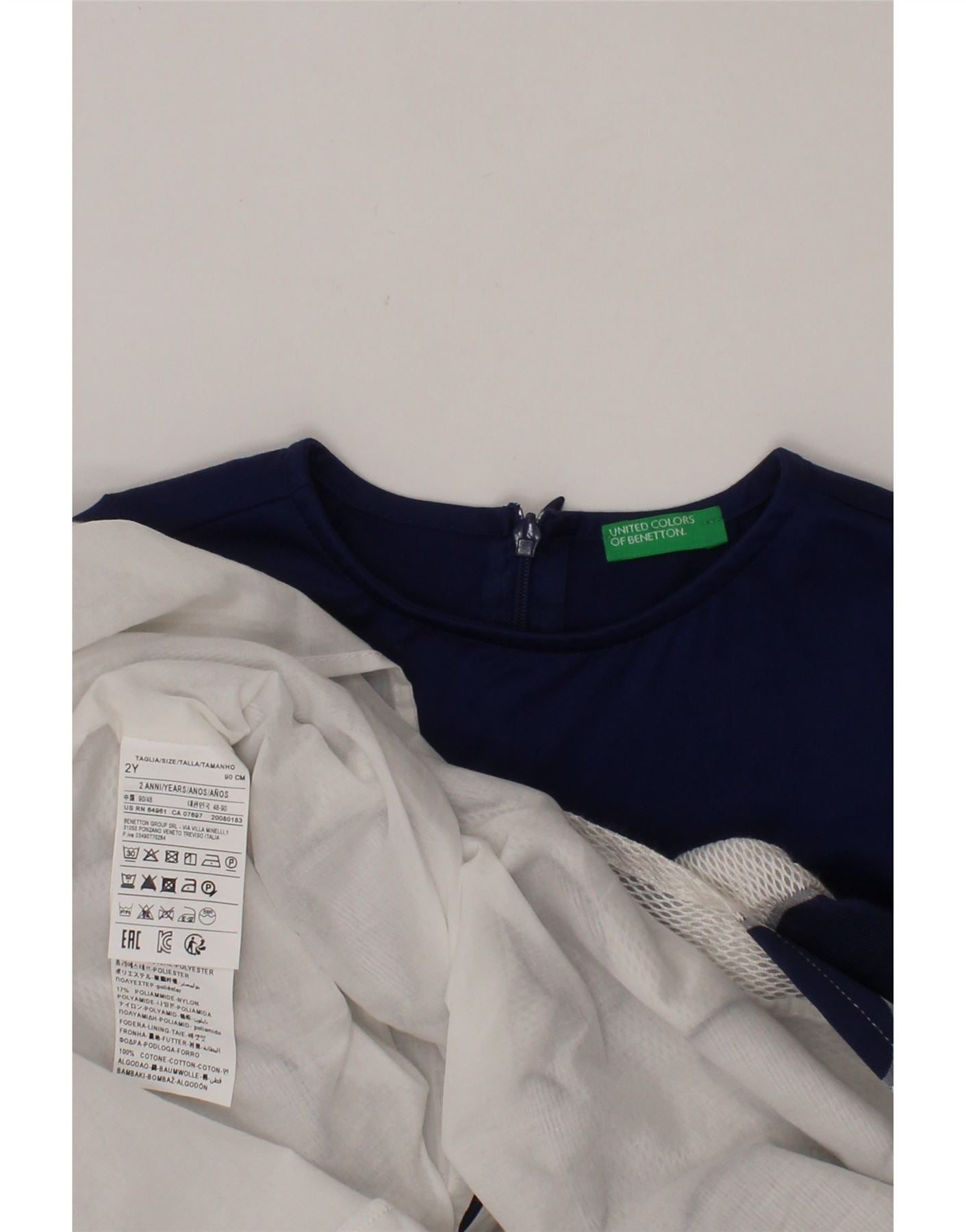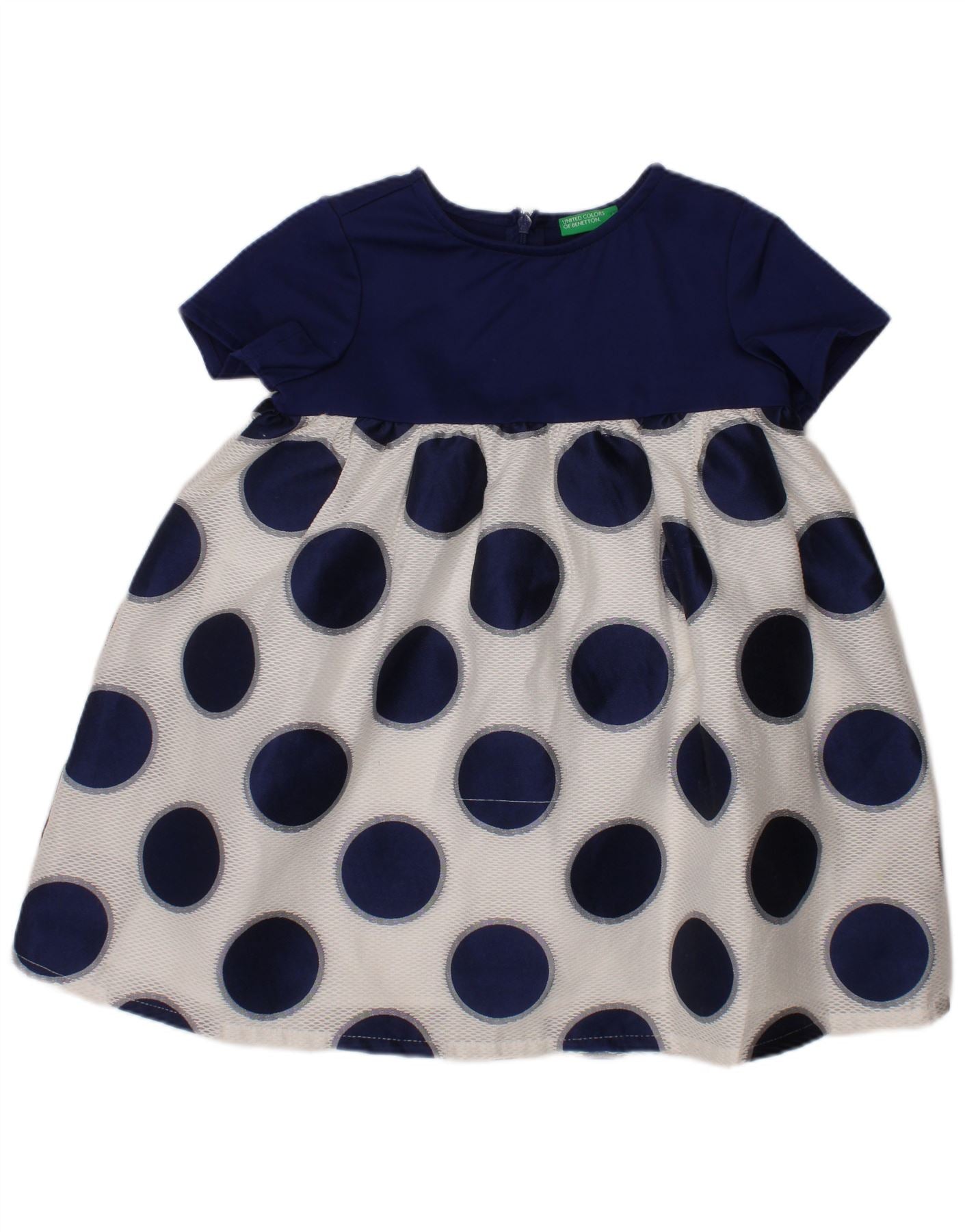 BENETTON Baby Girls A-Line Dress 18-24 Months Navy Blue Polka Dot Cotton