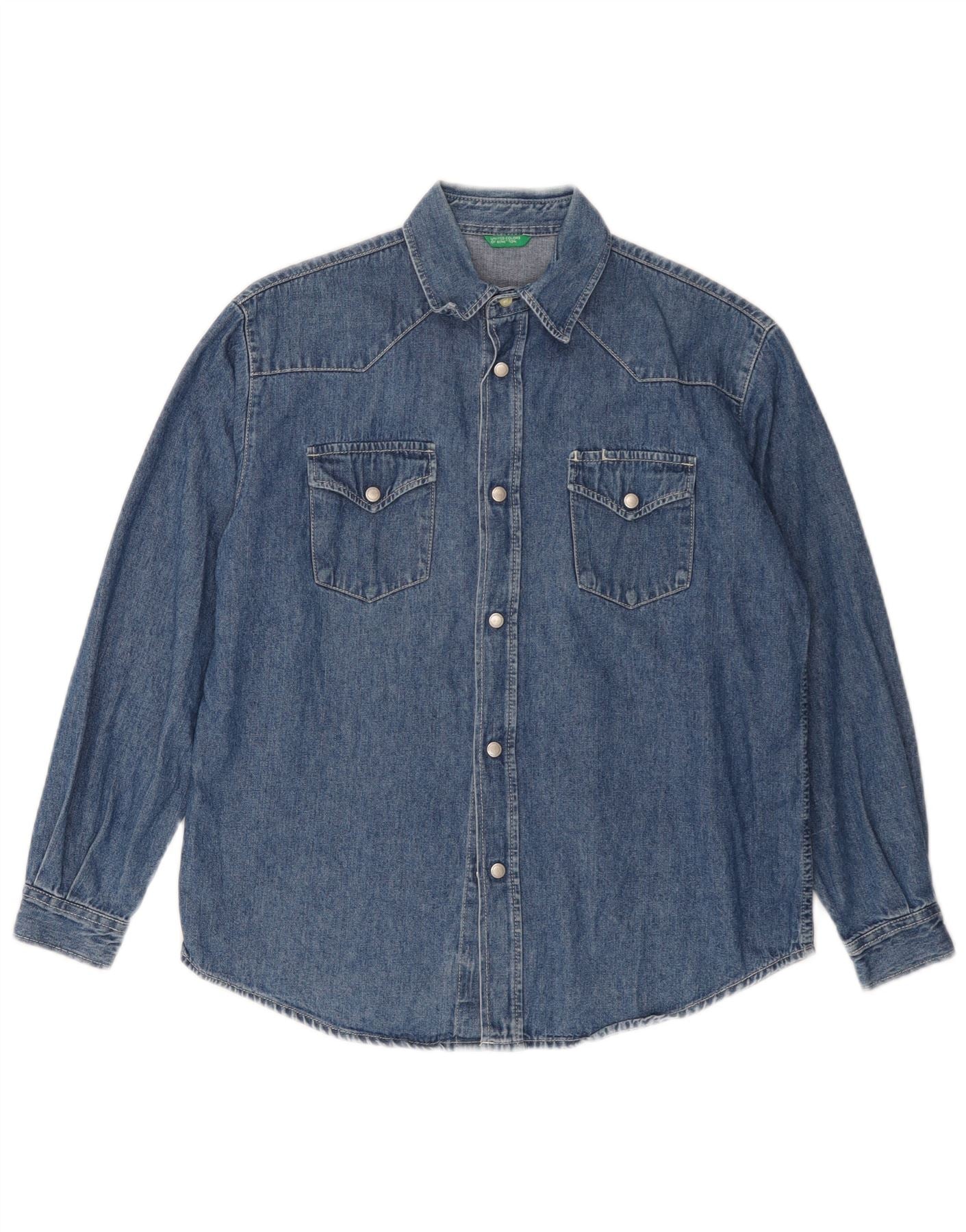 BENETTON Boys Denim Shirt 9-10 Years Large Blue Cotton