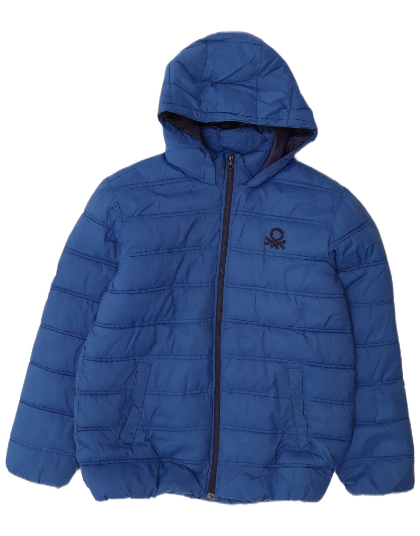 BENETTON Boys Hooded Padded Jacket 13-14 Years 3XL Blue Polyester