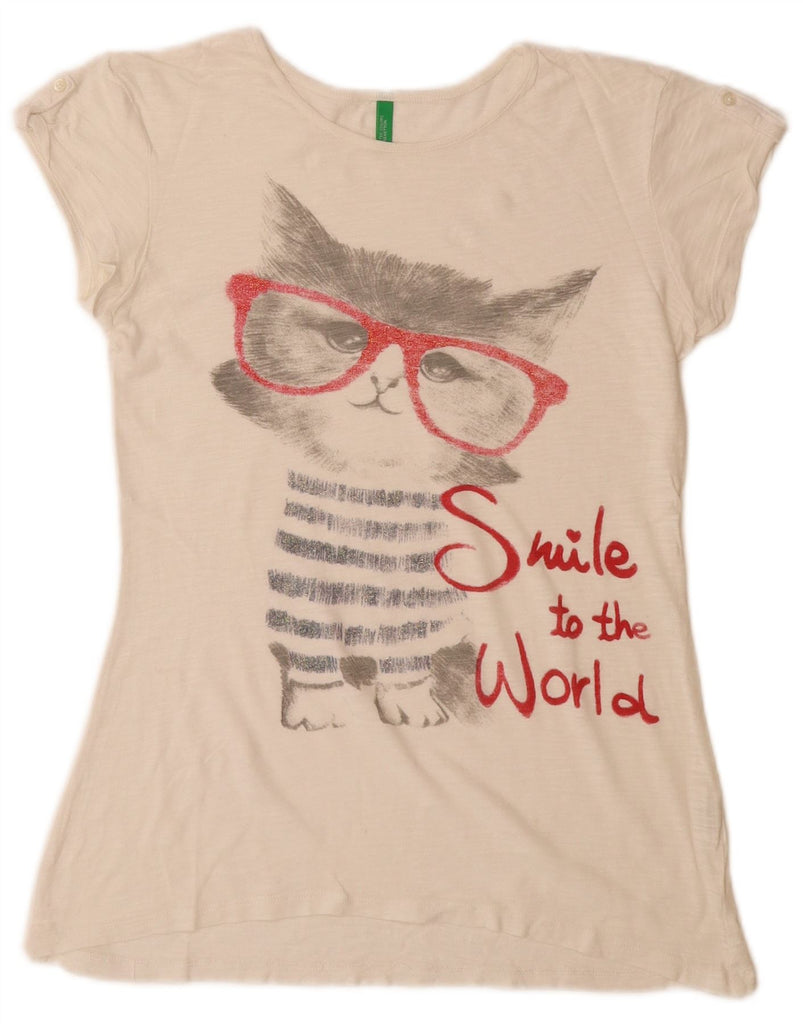 BENETTON Girls Graphic T-Shirt Top 11-12 Years 2XL Off White Cotton