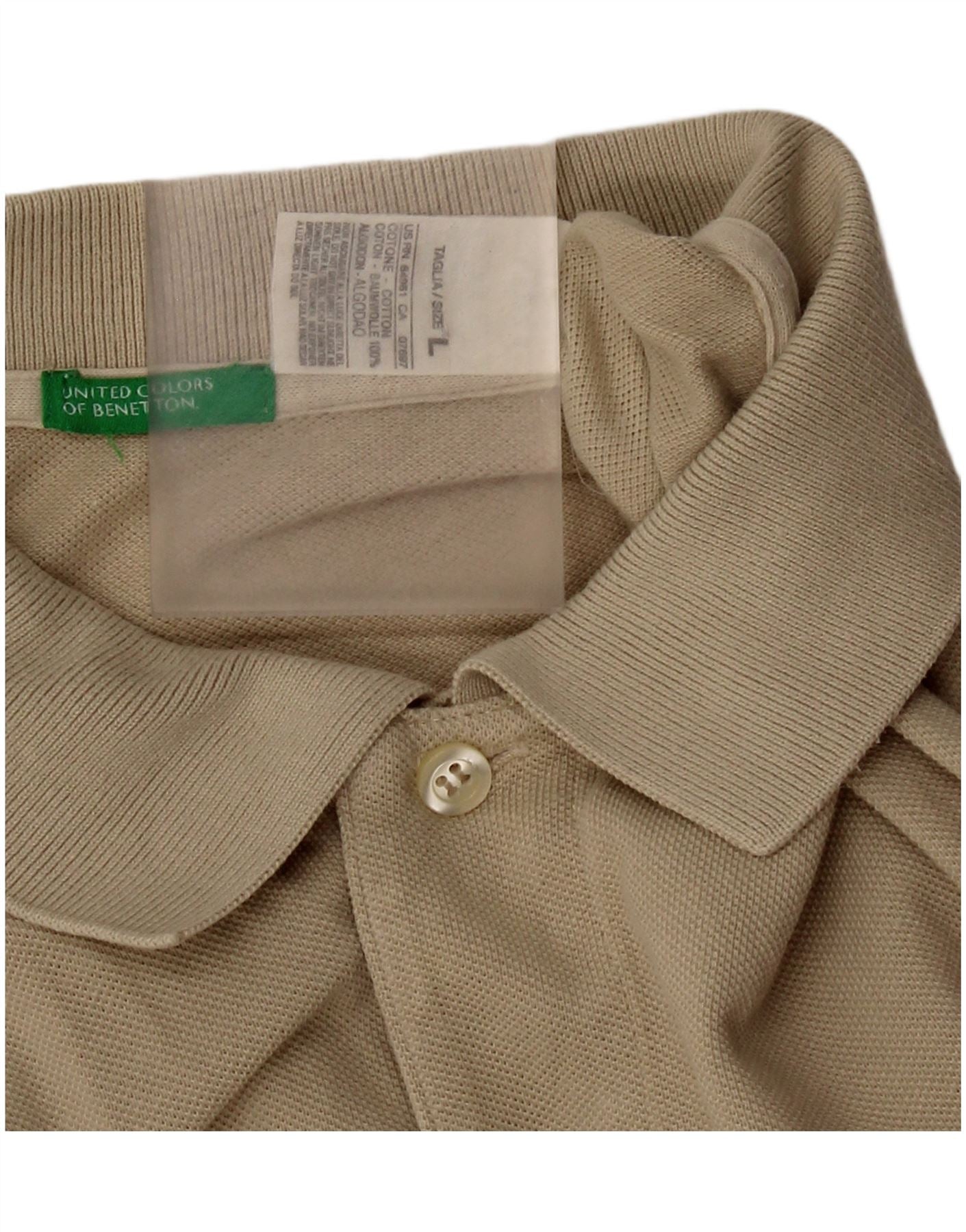 Benetton Mens Polo Shirt Large Khaki Cotton
