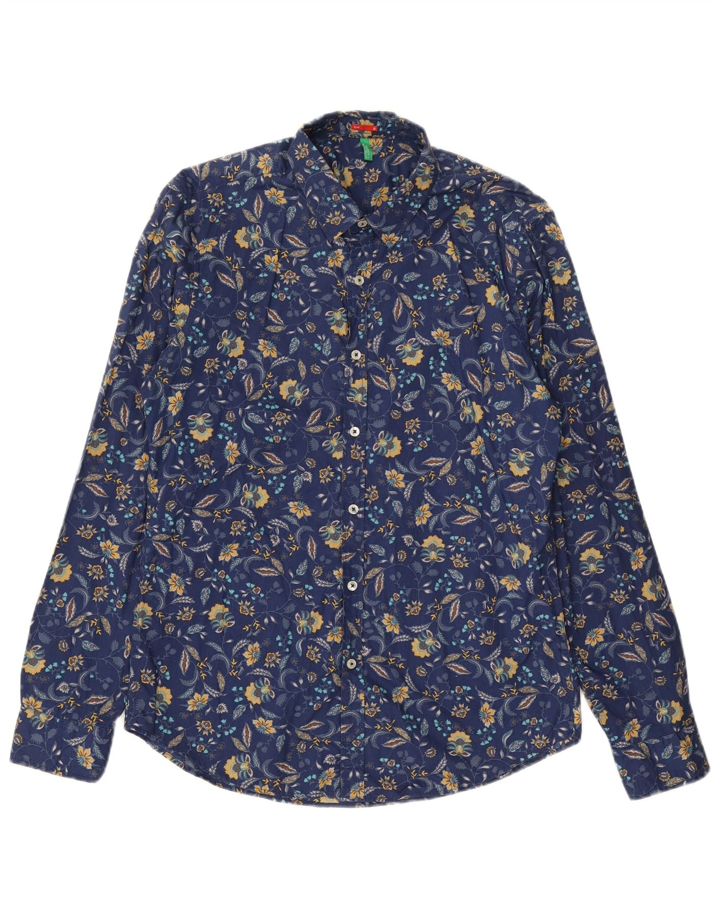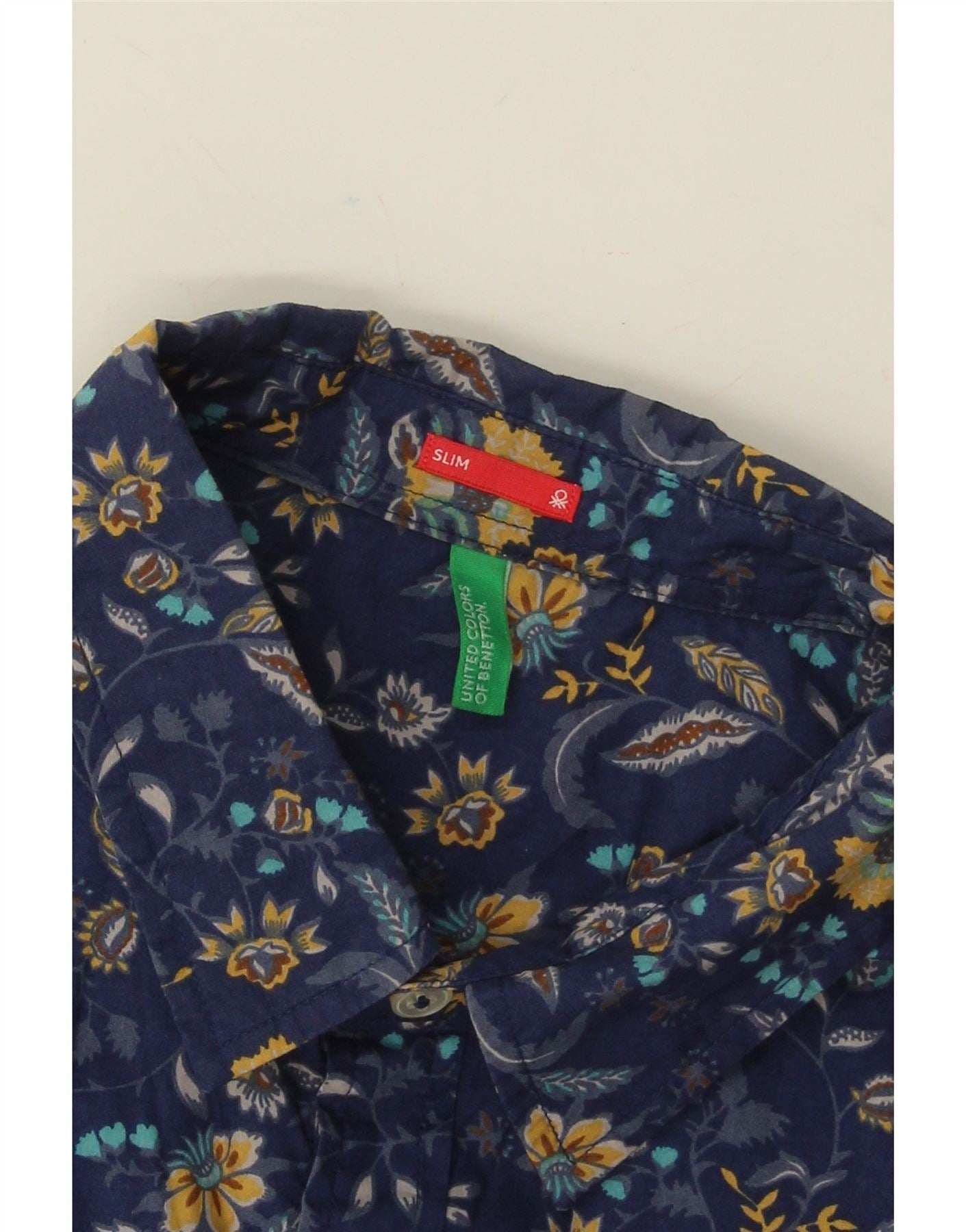 BENETTON Mens Slim Shirt Medium Navy Blue Floral