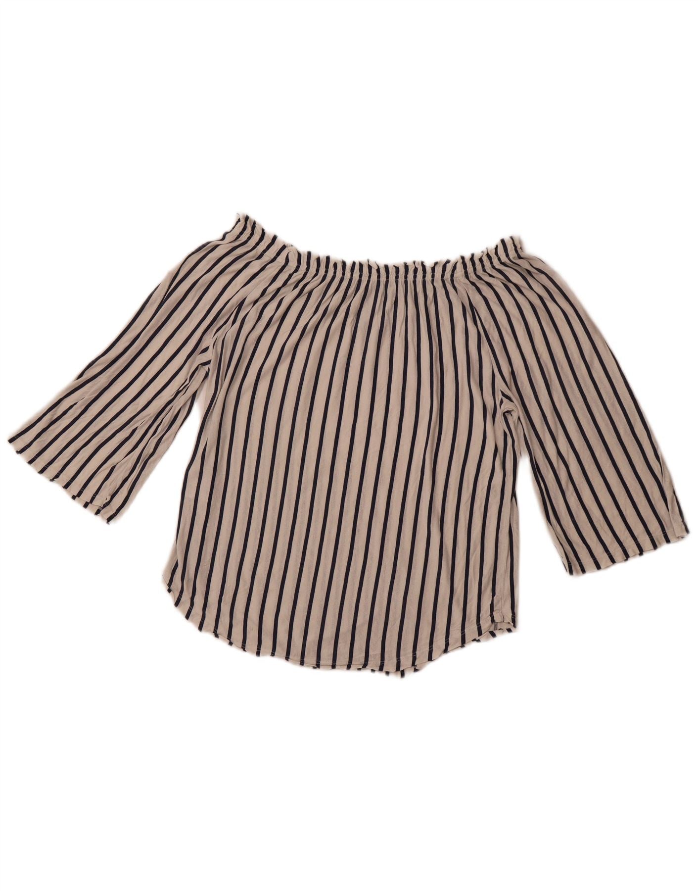 BENETTON Womens 3/4 Sleeve Off Shoulder Top UK 14 Medium White Striped