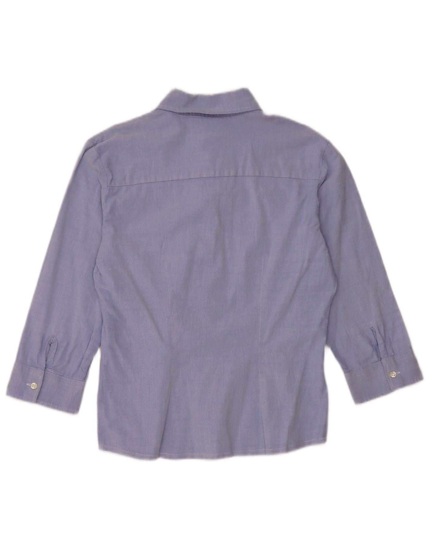 Benetton Womens 3/4 Sleeve Shirt UK 10 Small Blue Cotton