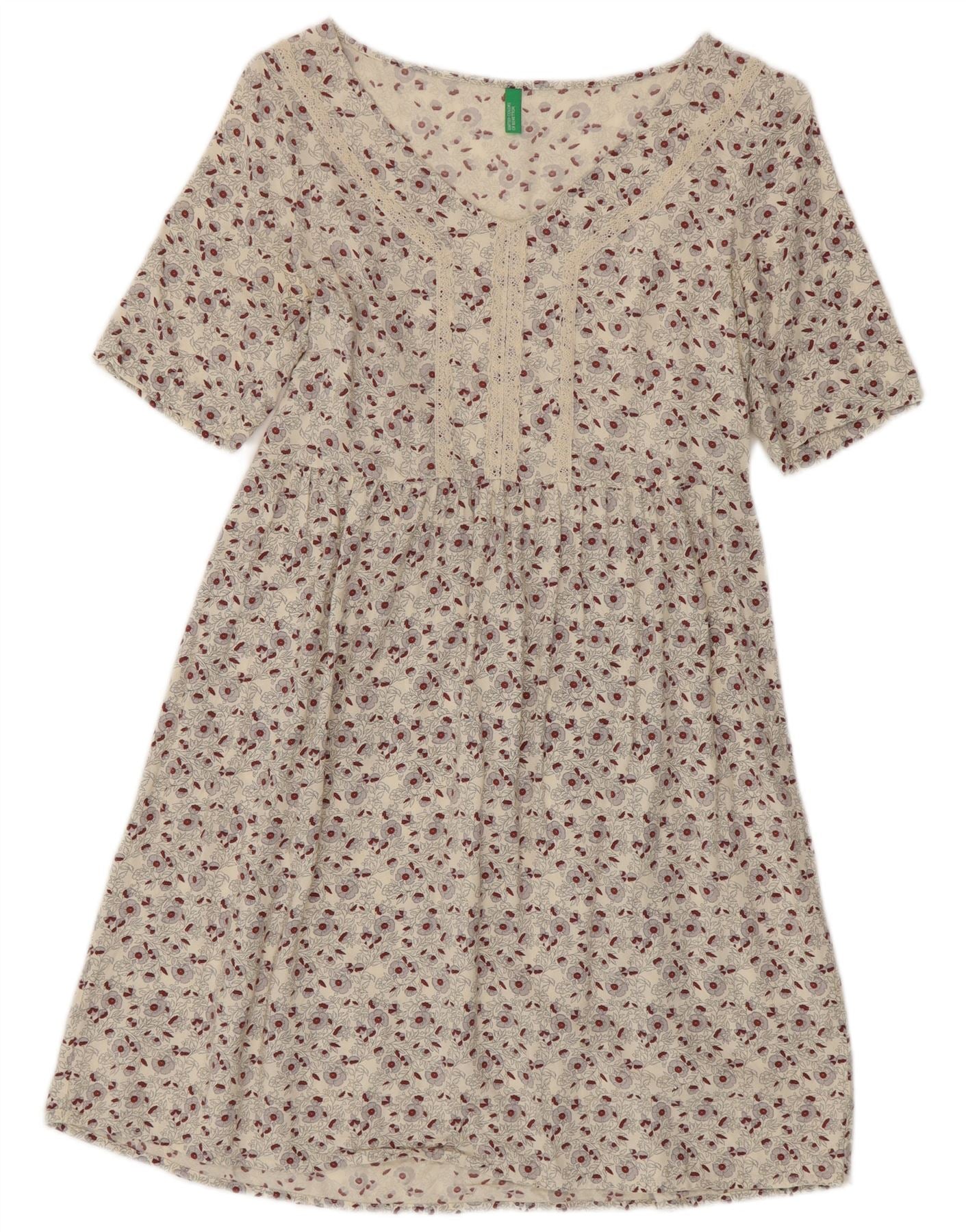 BENETTON Womens A-Line Dress UK 6 XS Off White Floral Viscose