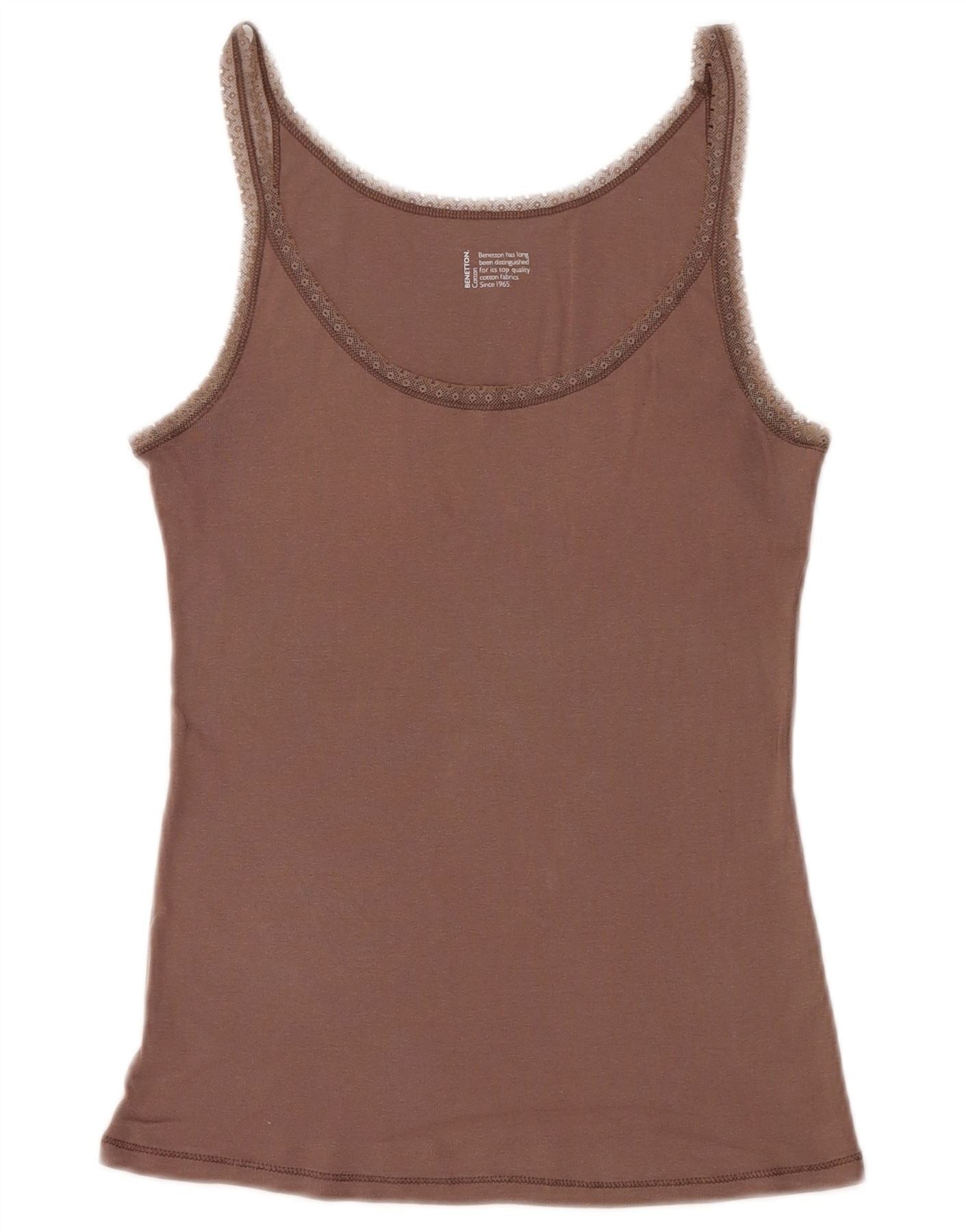 BENETTON Womens Cami Top UK 14 Large Brown Cotton