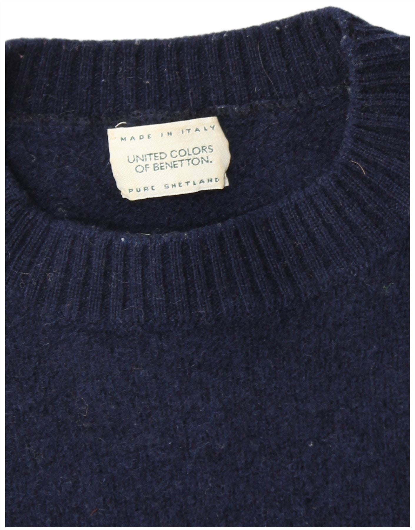 BENETTON Womens Crew Neck Jumper Sweater UK 14 Medium Navy Blue Wool