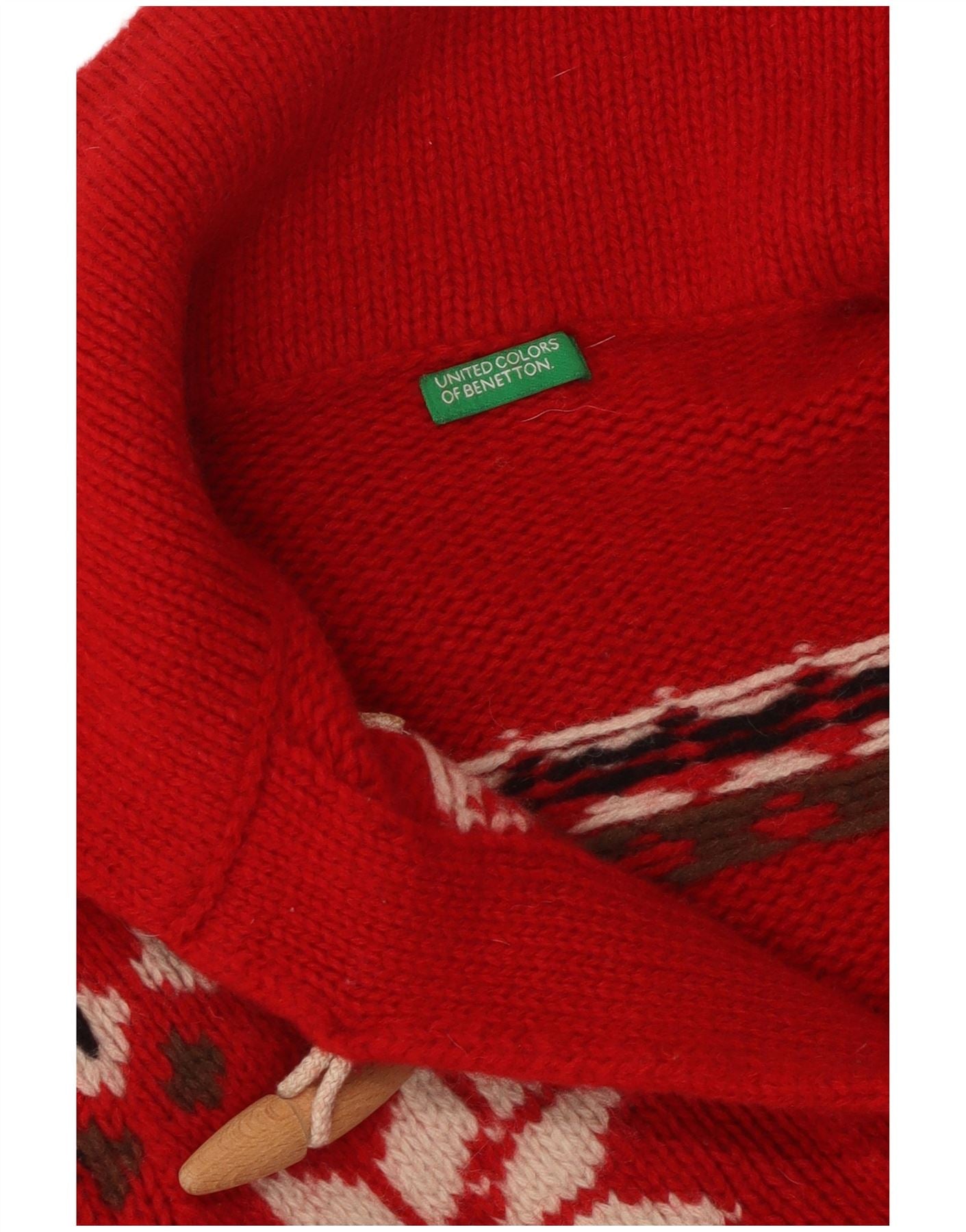 BENETTON Womens Crop Cardigan Sweater UK 10 Small Red Fair Isle