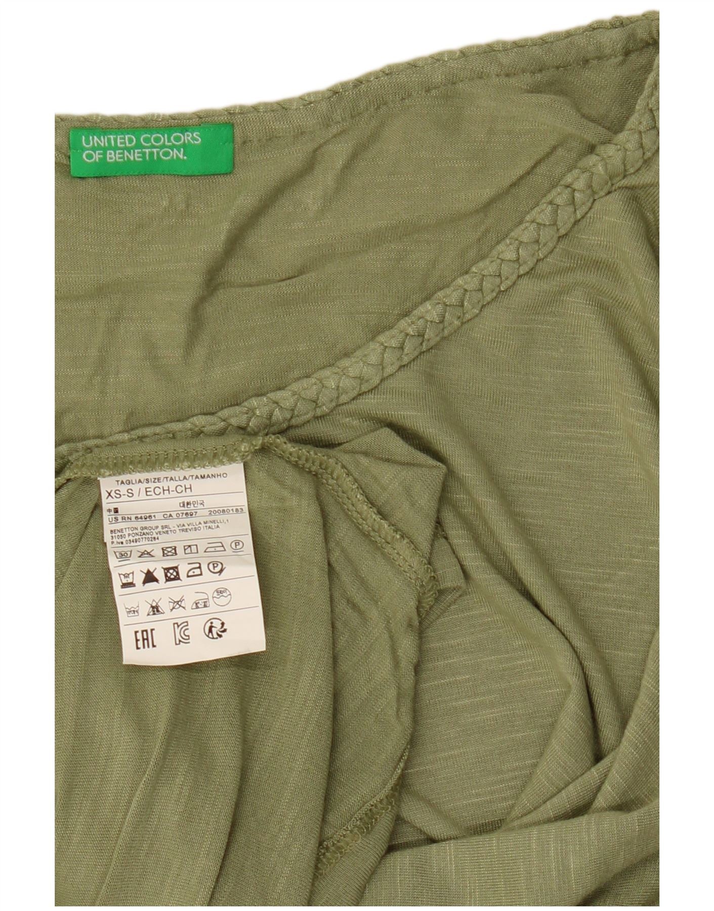 BENETTON Womens Crop Oversized T-Shirt Top UK 6 XS Khaki Flecked Viscose