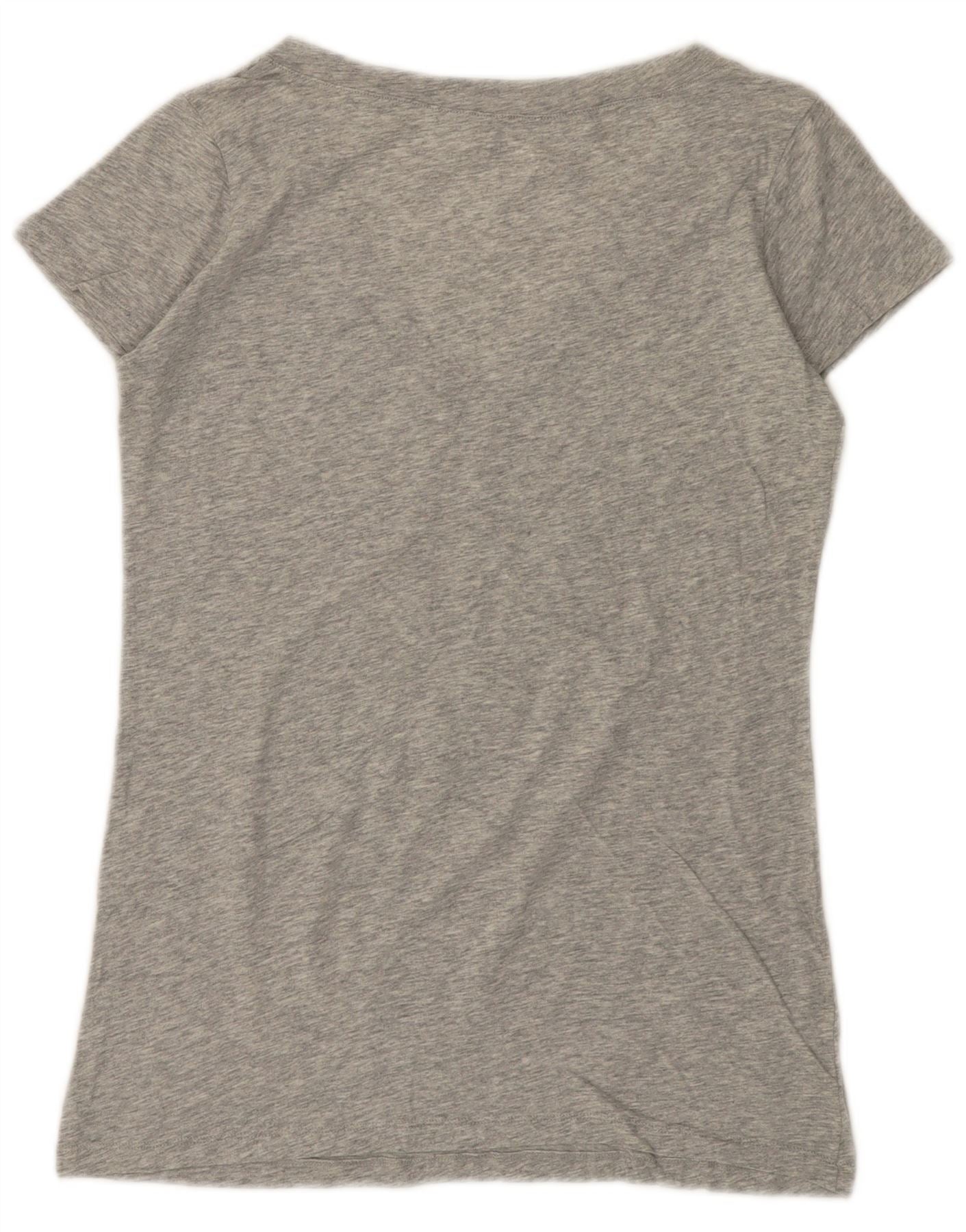 BENETTON Womens Graphic T-Shirt Top UK 12 Medium Grey Flecked