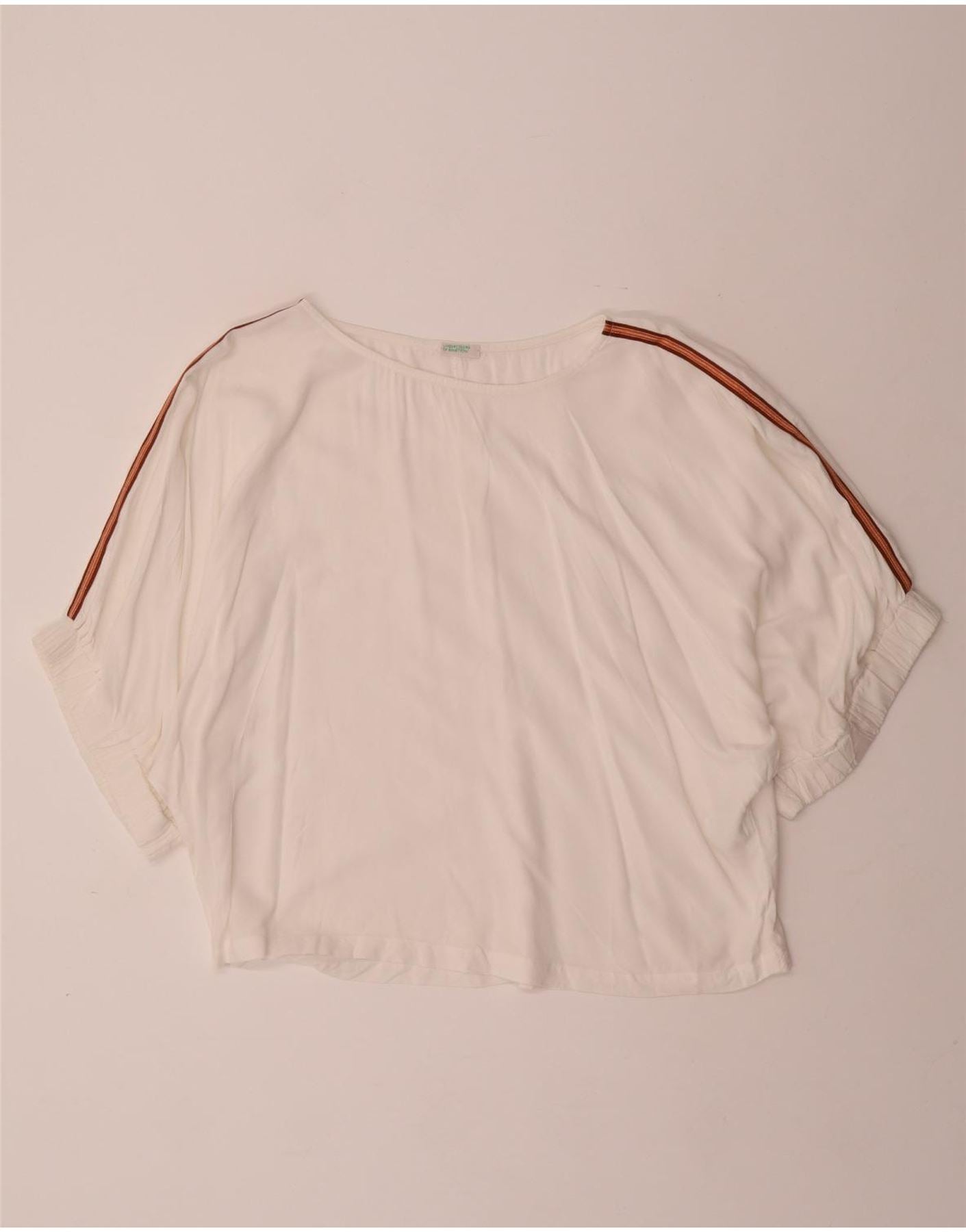 BENETTON Womens Oversized Blouse Top UK 10 Small Off White Viscose
