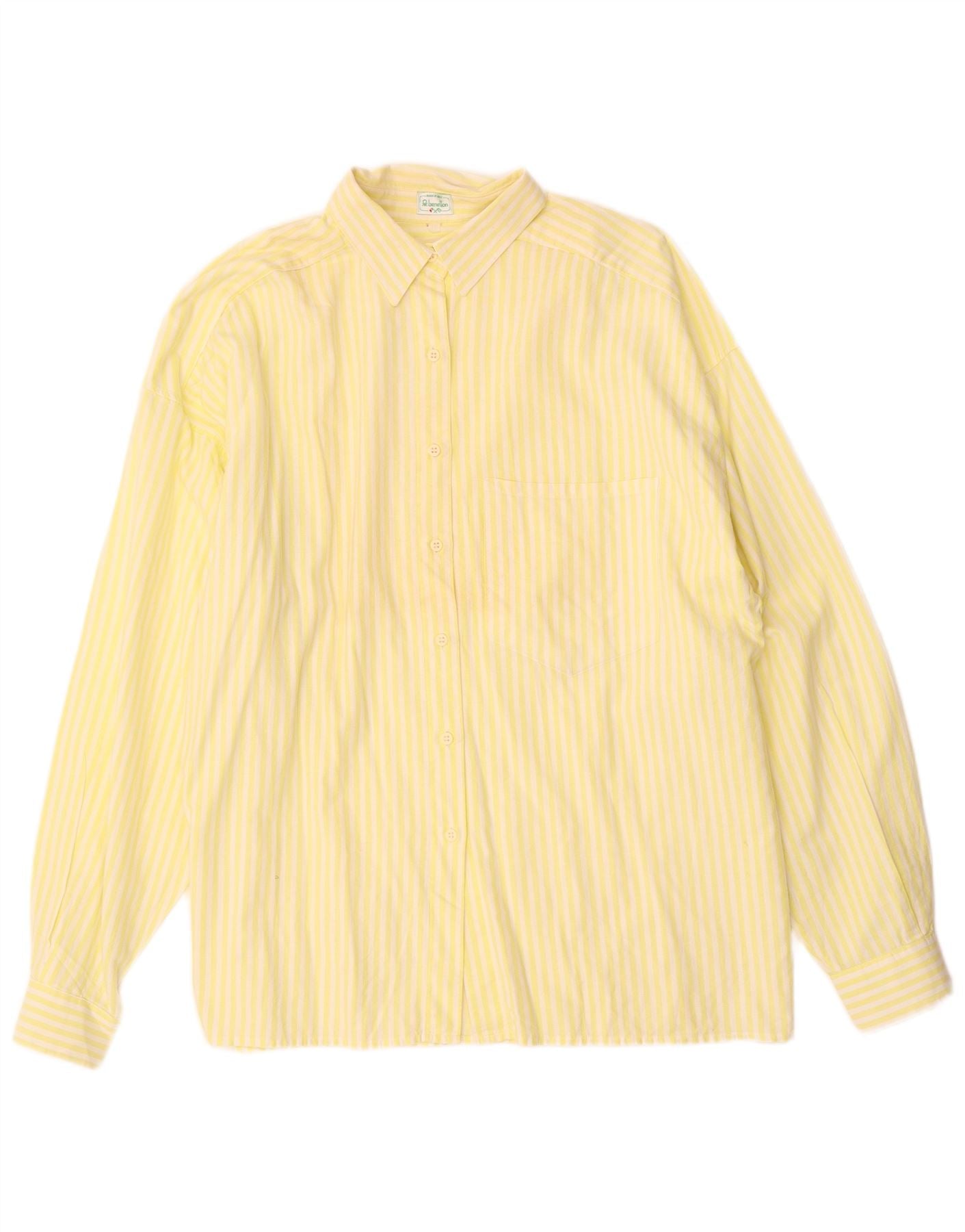 BENETTON Womens Oversized Shirt IT 46 Large Yellow Striped Cotton