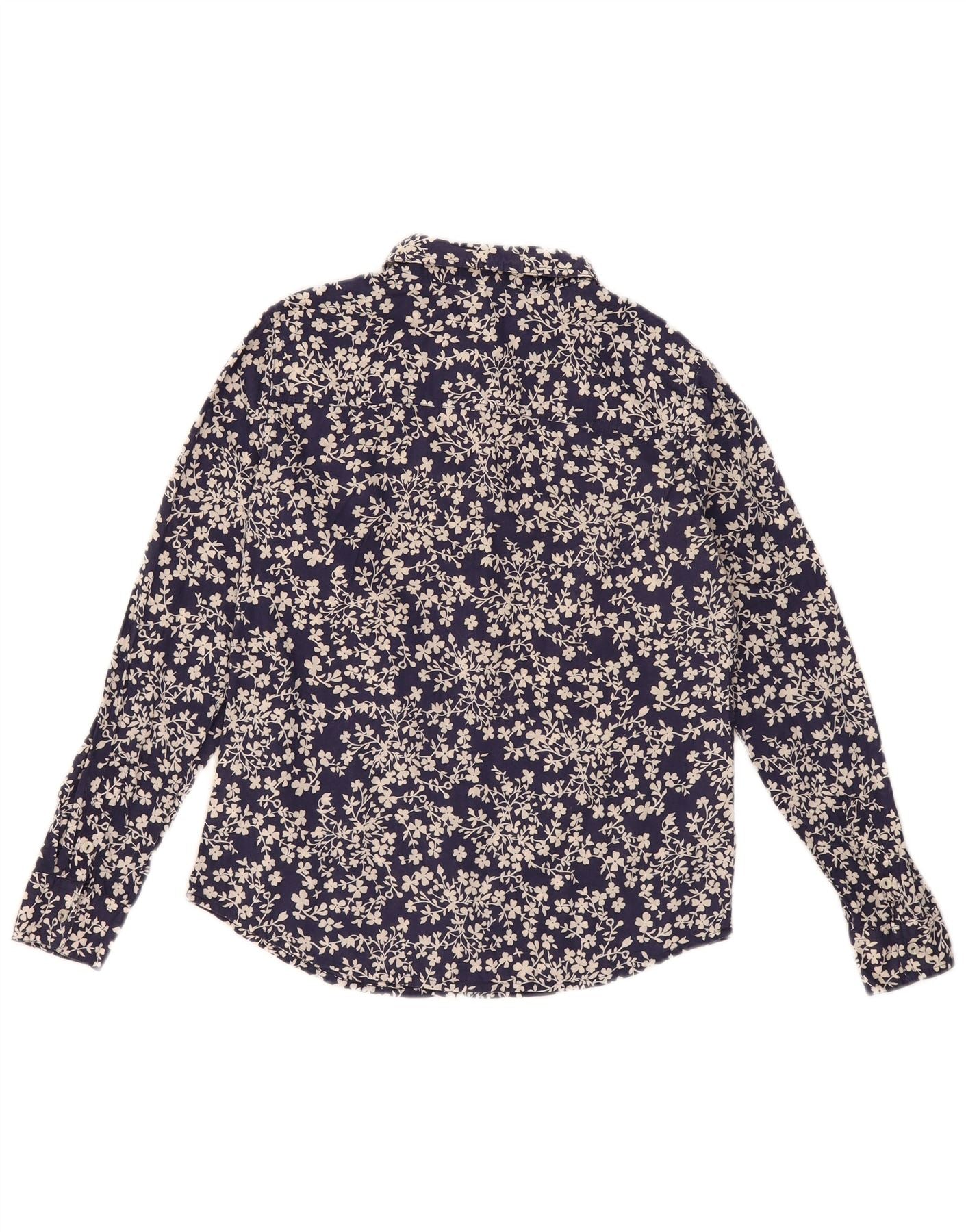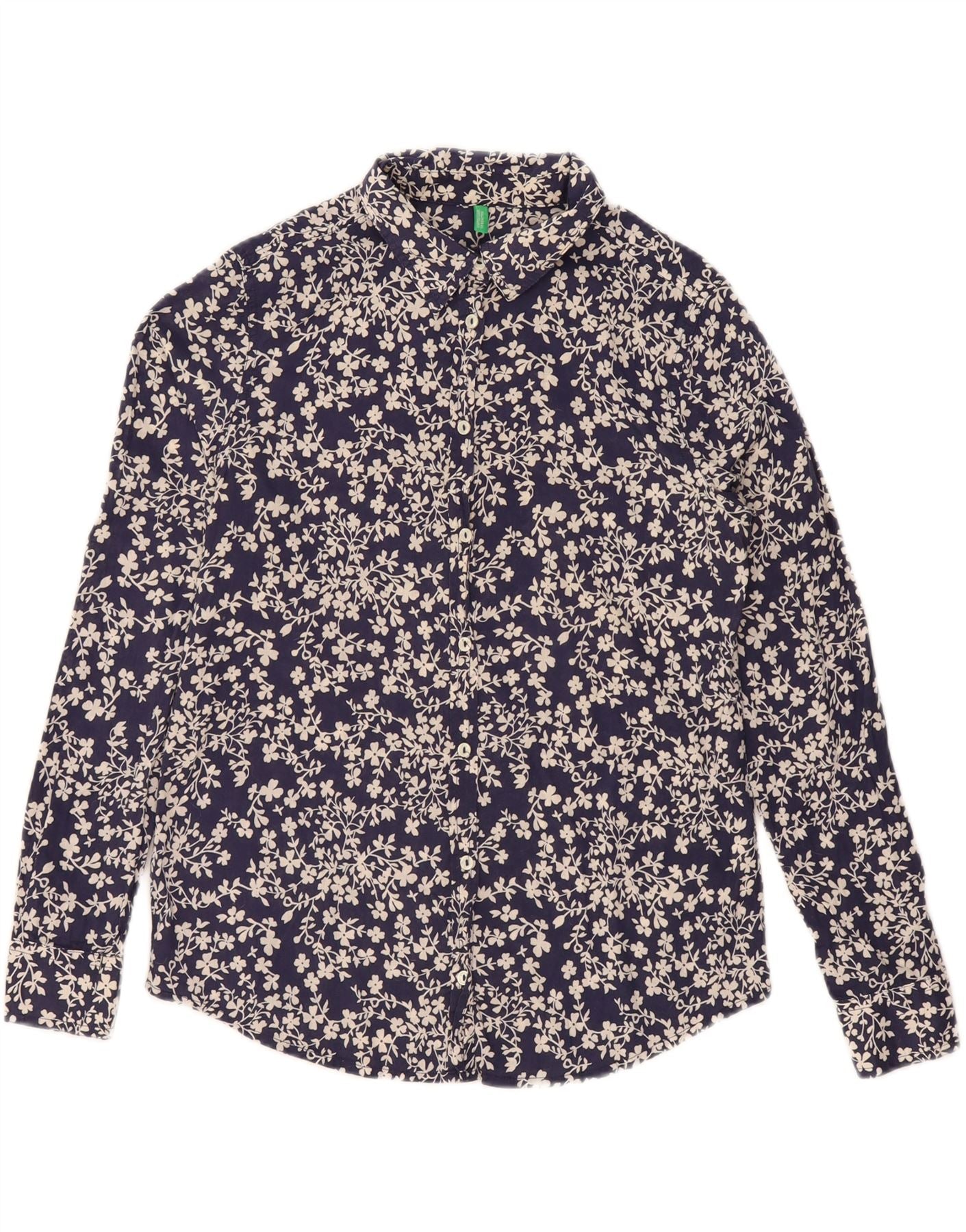 BENETTON Womens Oversized Shirt UK 10 Small Navy Blue Floral Cotton
