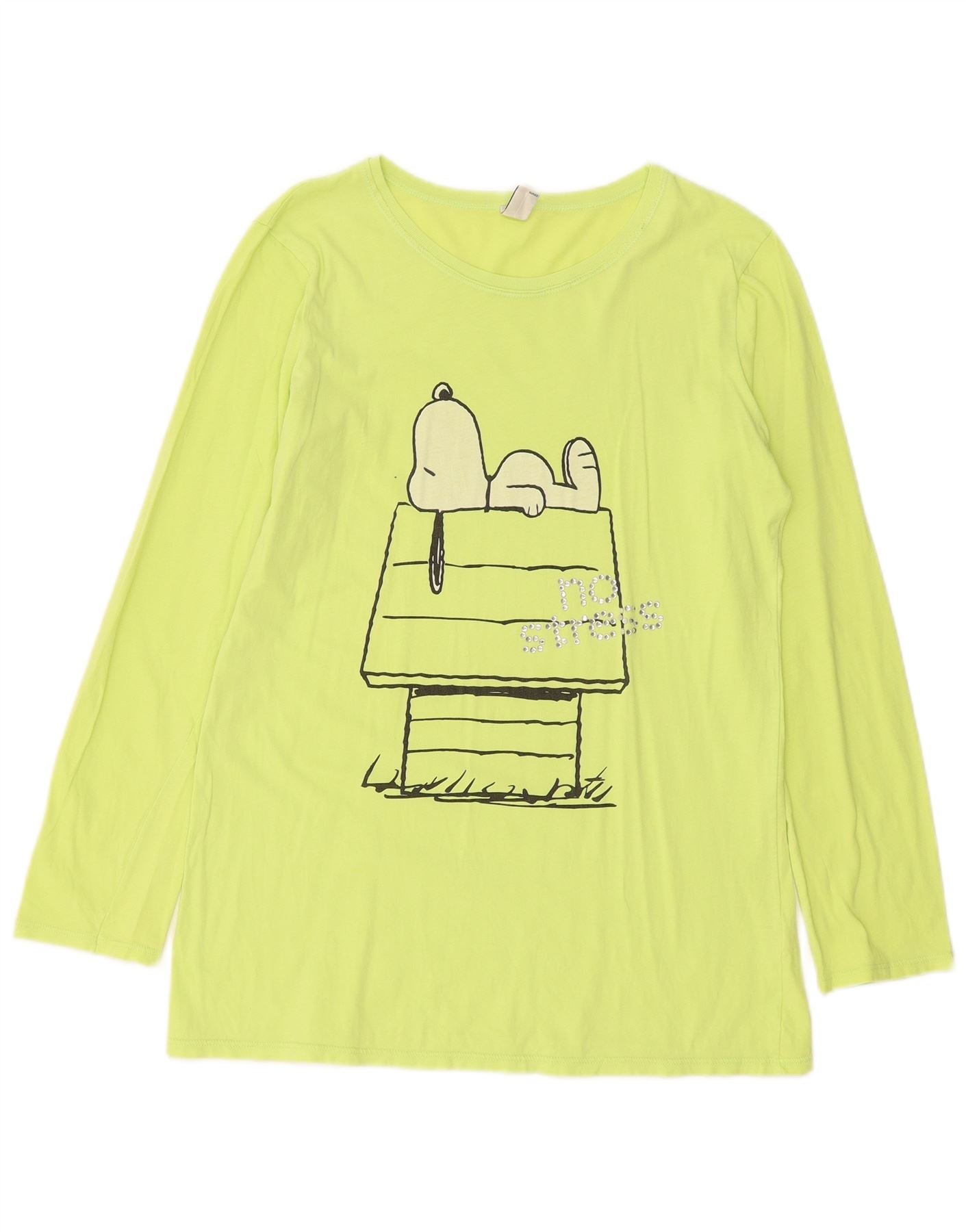 BENETTON Womens Peanuts Graphic Top Long Sleeve UK 14 Medium Green Cotton