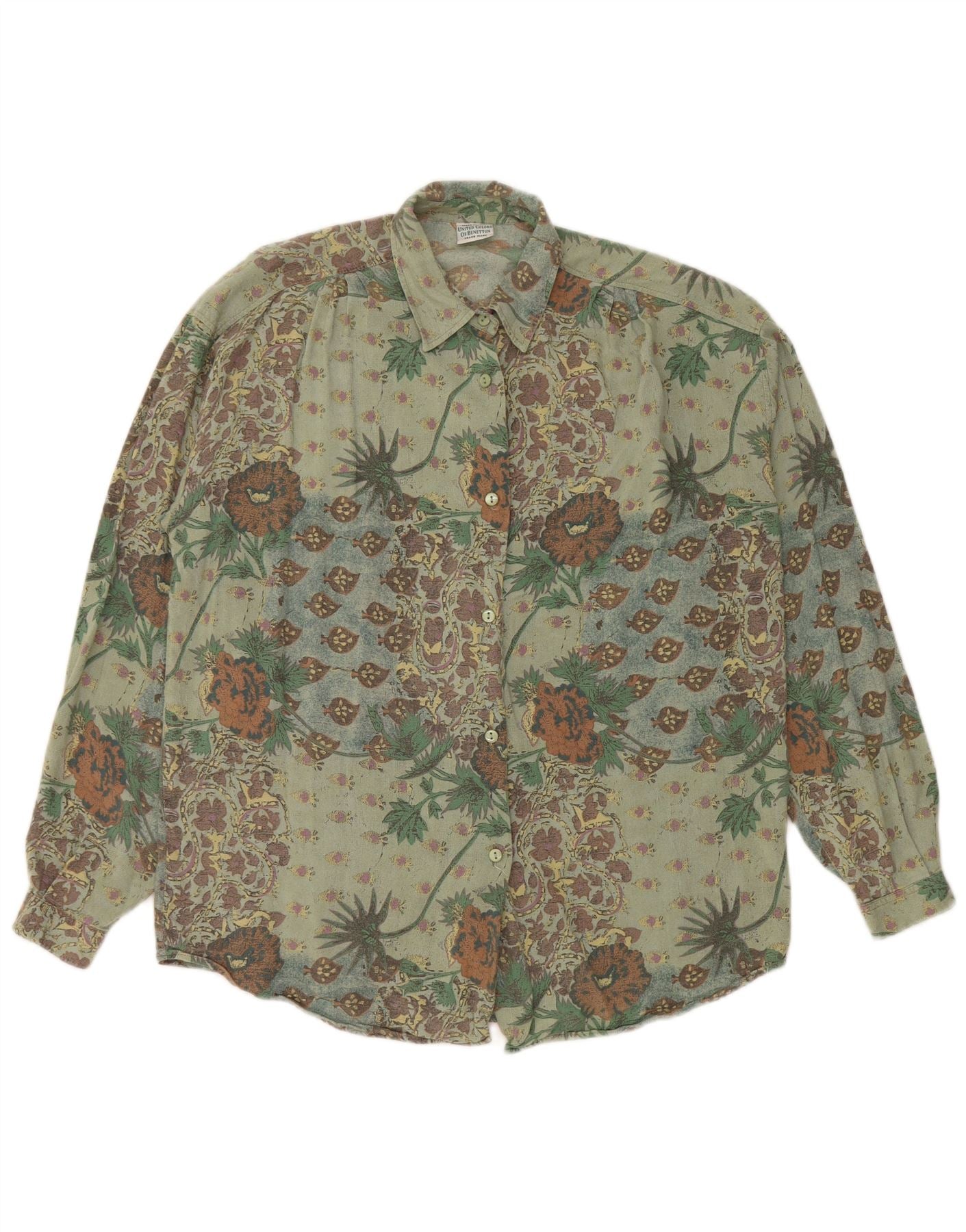 BENETTON Womens Shirt UK 18 XL Green Floral Viscose
