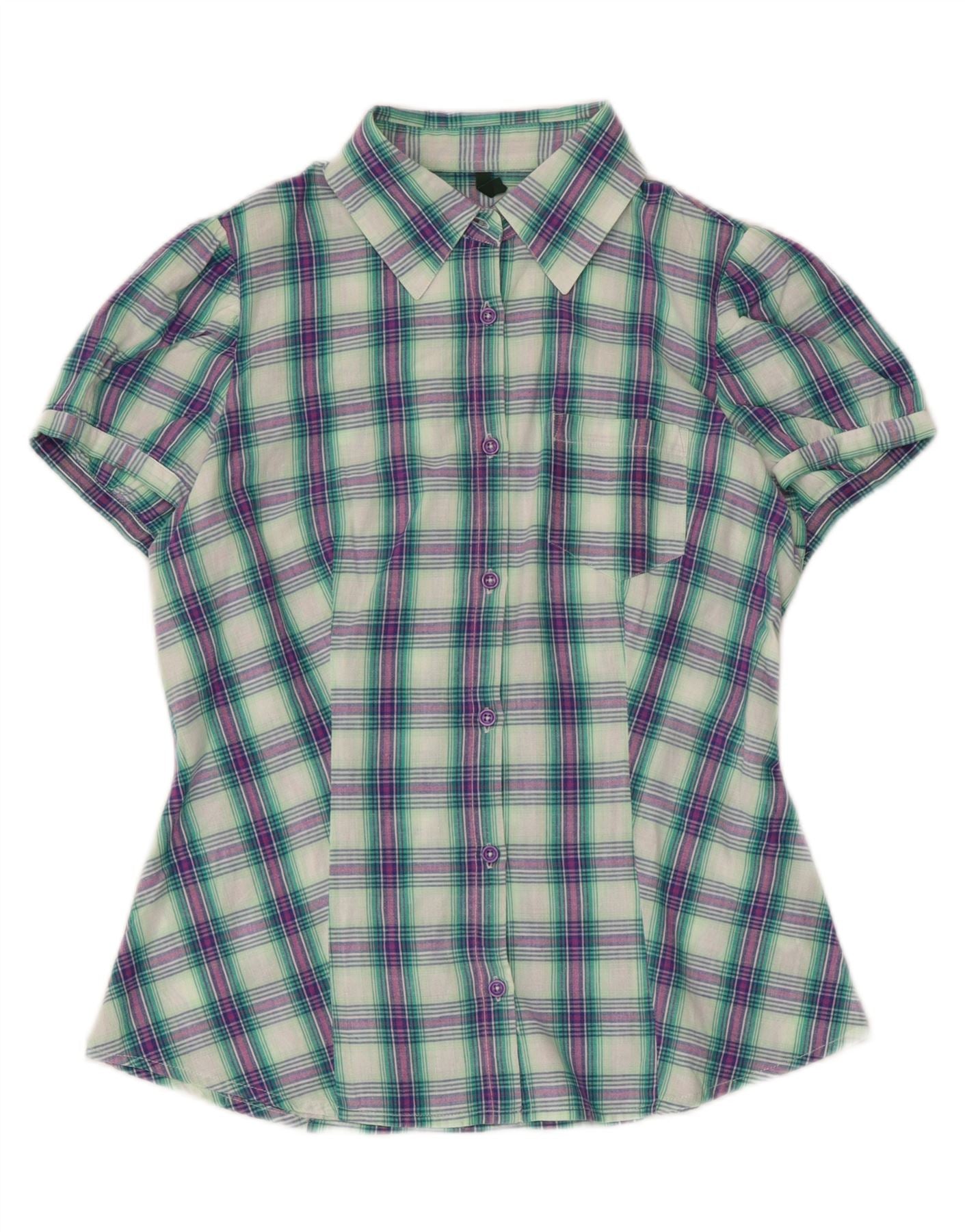 BENETTON Womens Short Sleeve Shirt UK 14 Medium Multicoloured Check Cotton