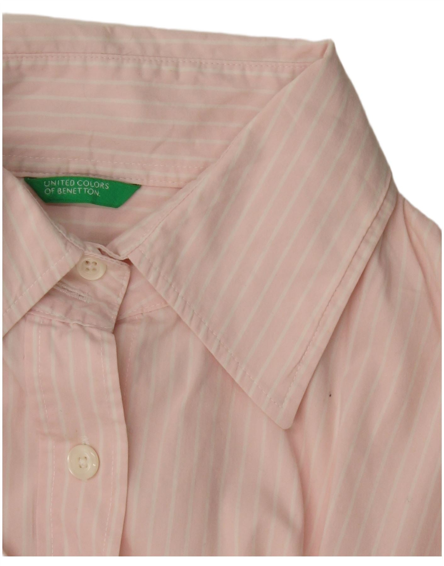 BENETTON Womens Short Sleeve Shirt UK 16 Large Pink Pinstripe