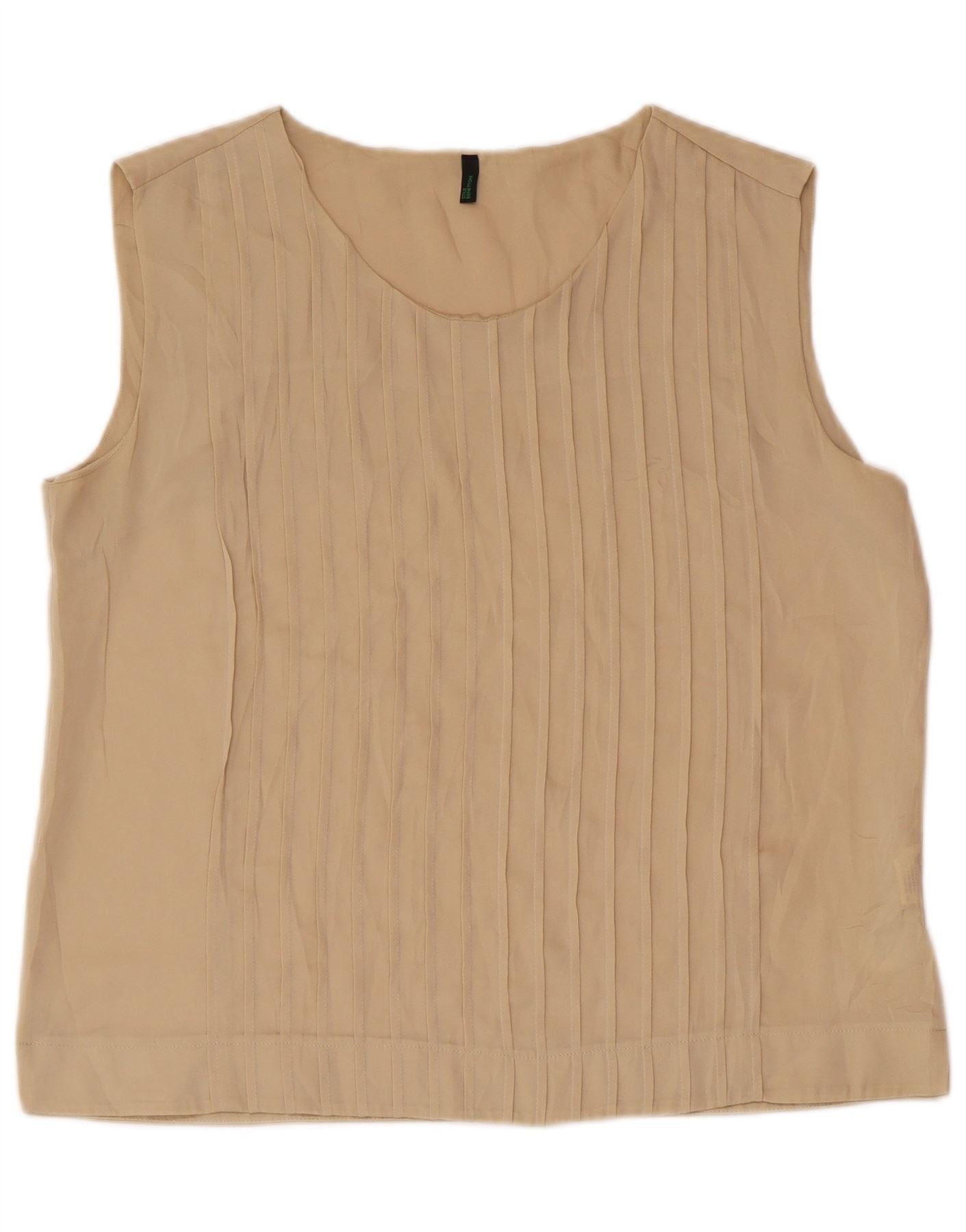 BENETTON Womens Sleeveless Blouse Top UK 16 Large Beige Polyester