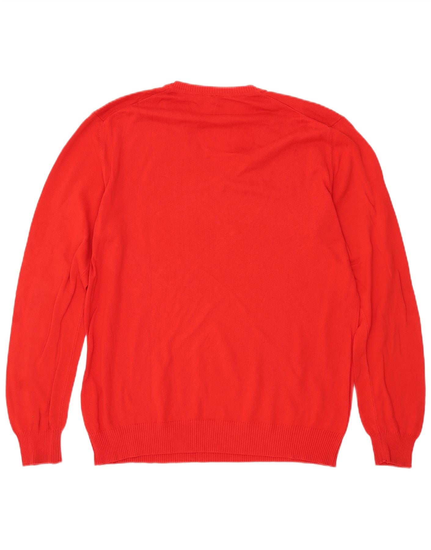 BENETTON Womens V-Neck Jumper Sweater UK 16 Large Red Cotton