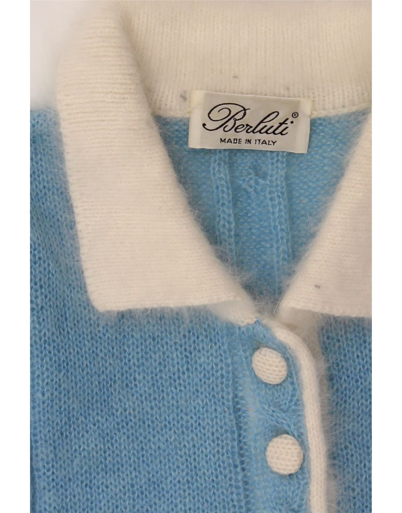 BERLUTI Womens Polo Neck Jumper Sweater UK 16 Large Blue Mohair