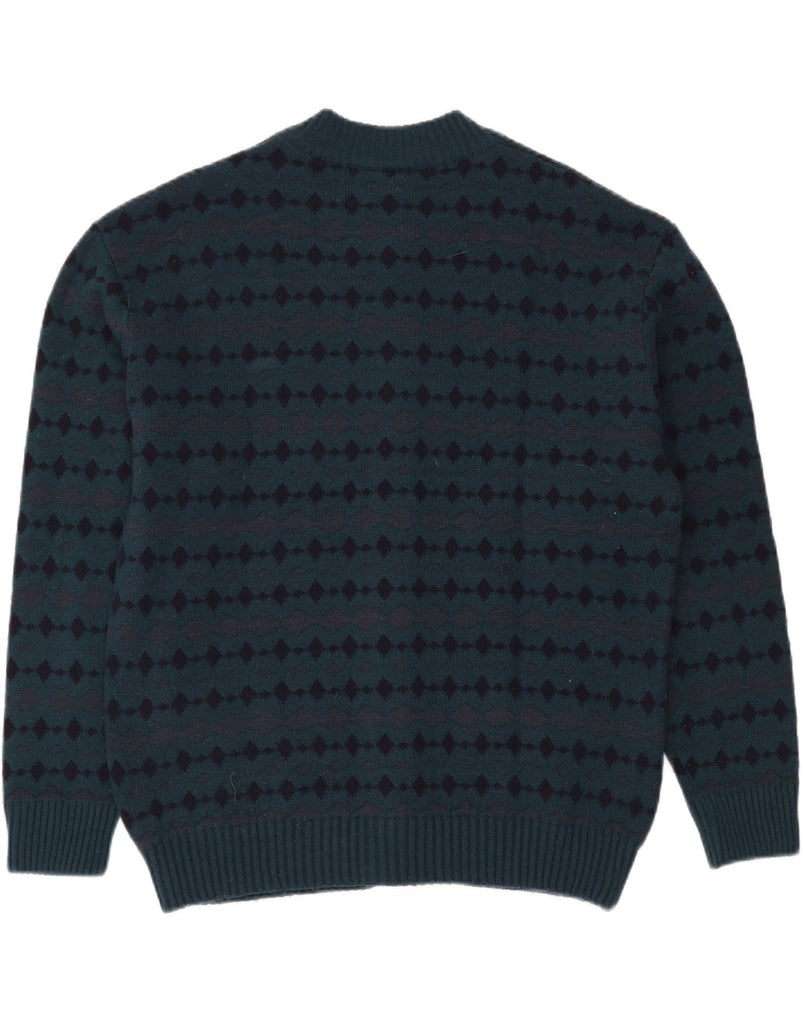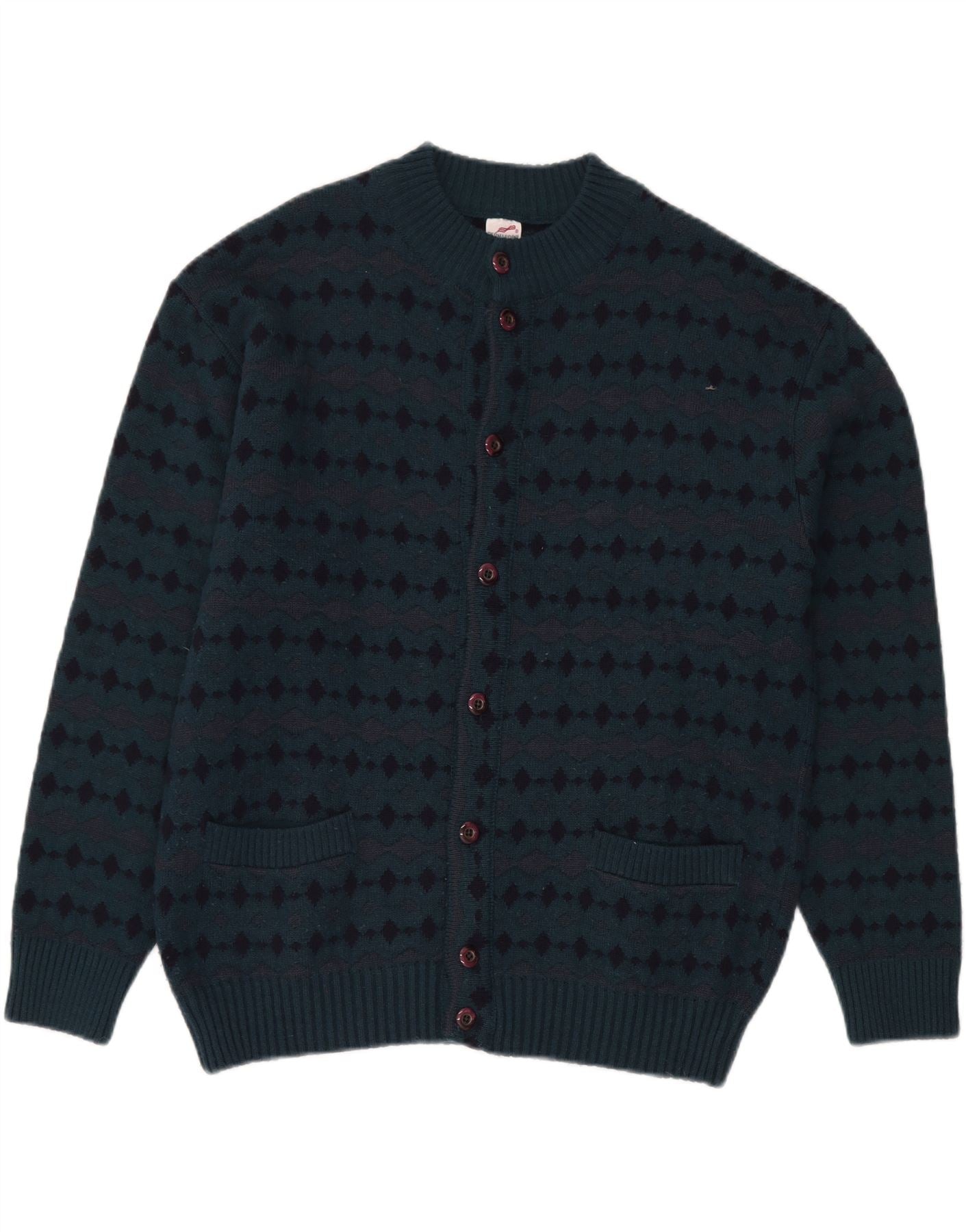 BERNARDINI Mens Cardigan Sweater Medium Blue Argyle/Diamond Wool