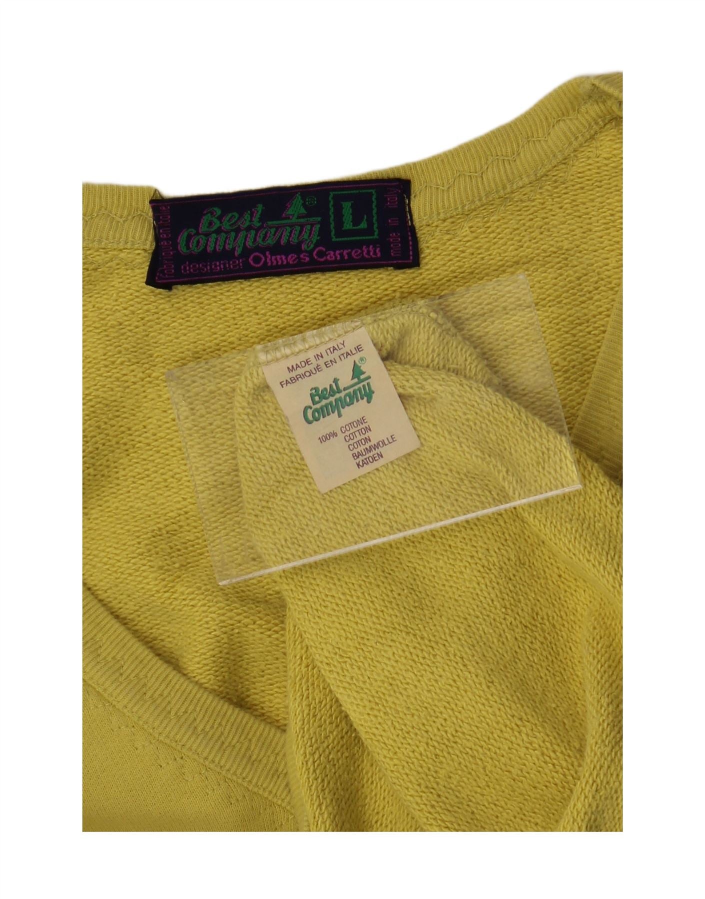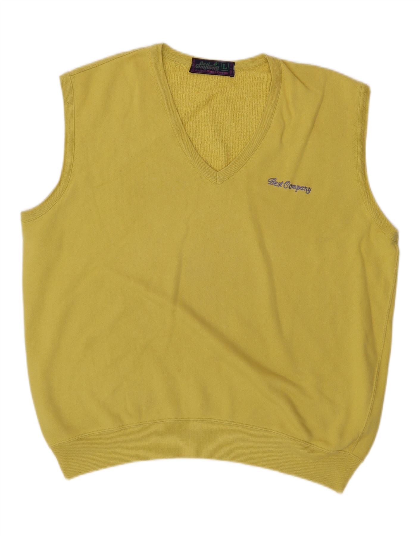 BEST COMPANY Mens Sleeveless Sweatshirt Jumper Large Yellow Cotton