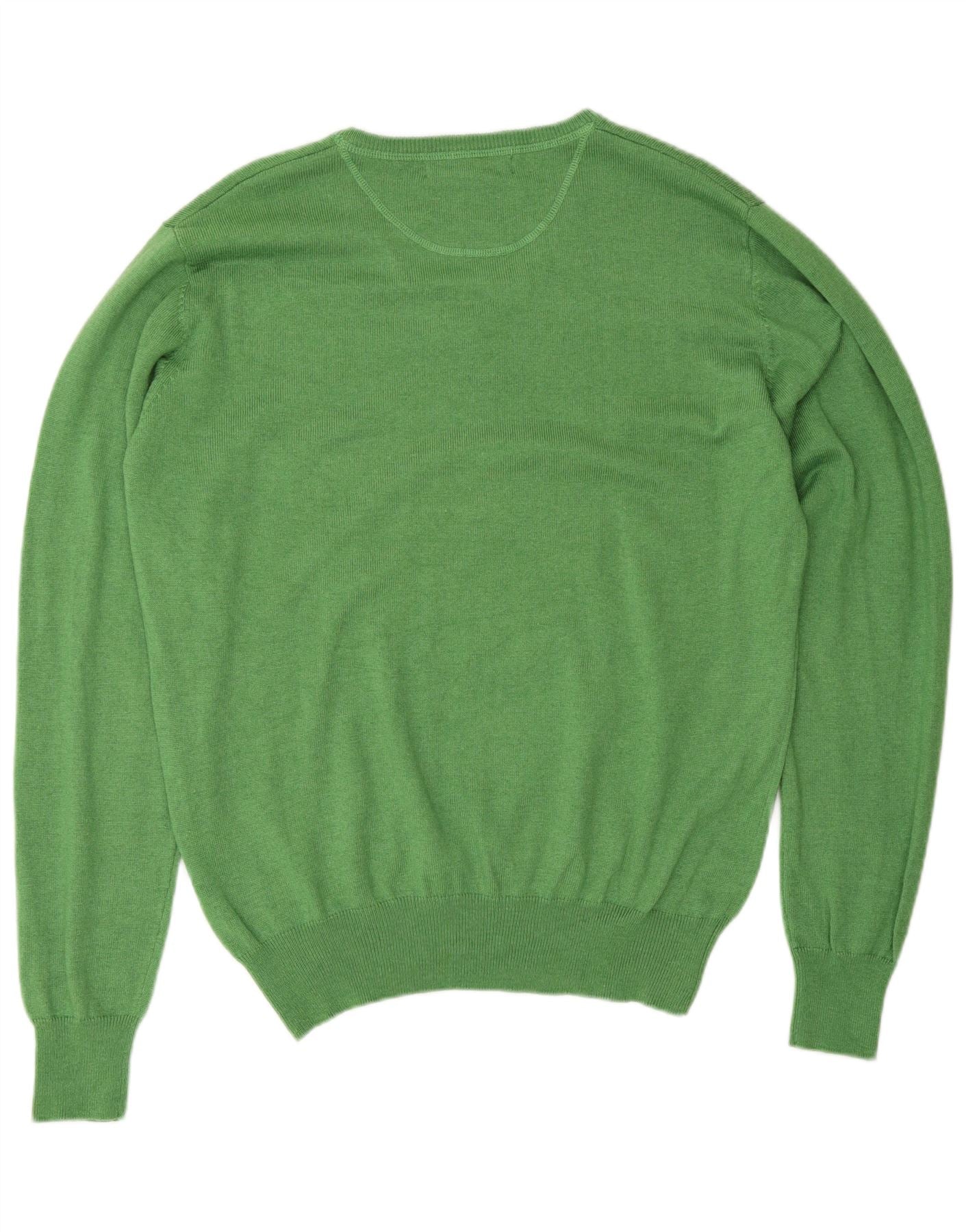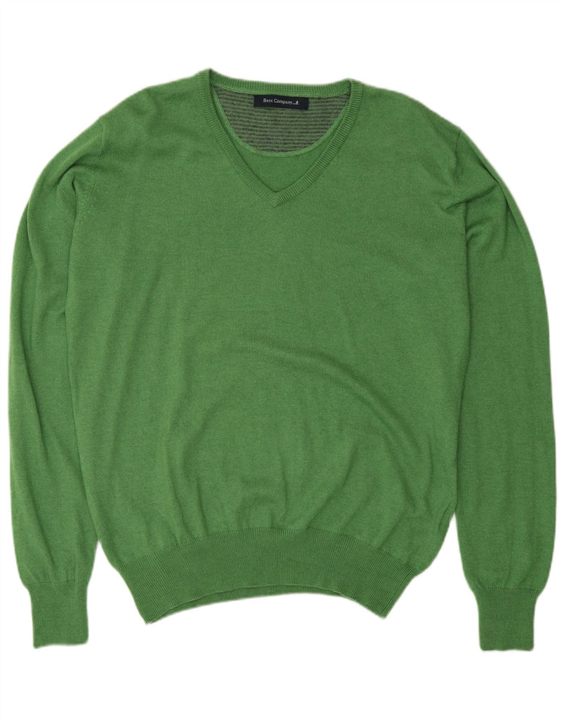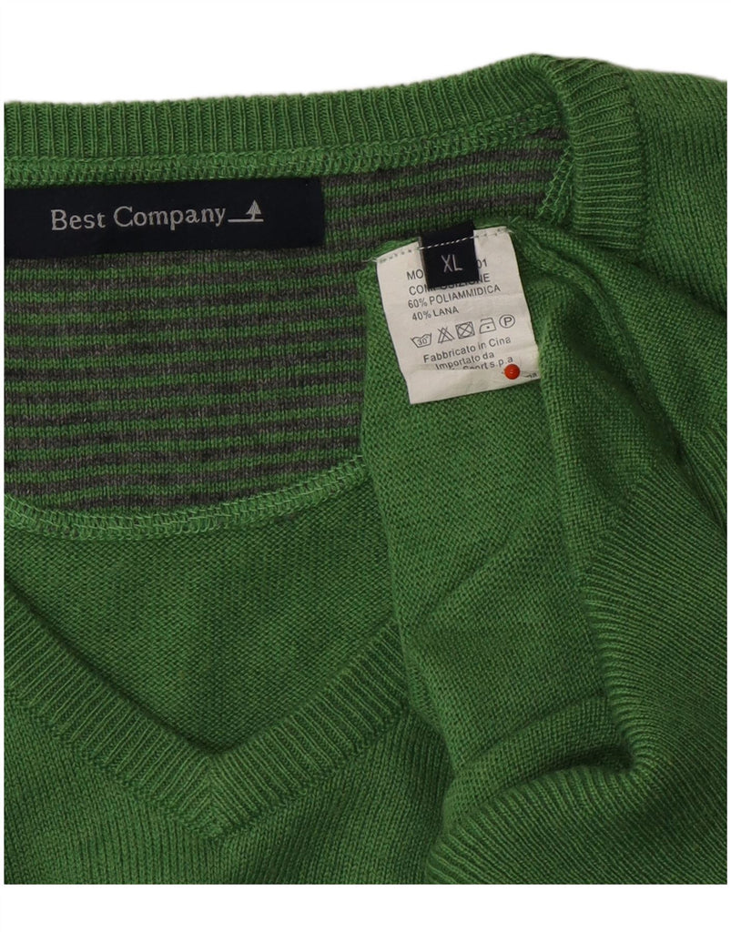 BEST COMPANY Mens V-Neck Jumper Sweater XL Green Polyamide