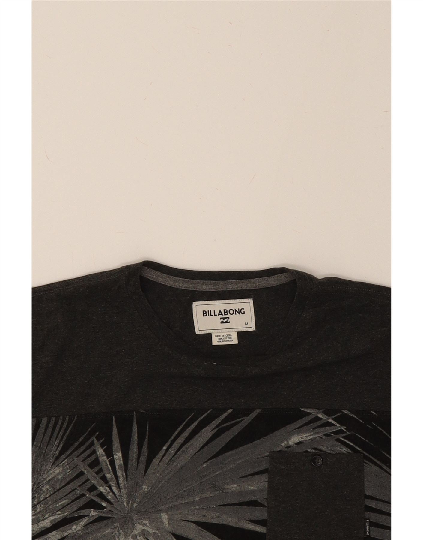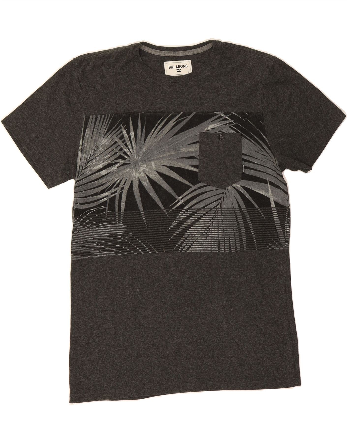 BILLABONG Mens Graphic T-Shirt Top Medium Grey Pinstripe Cotton