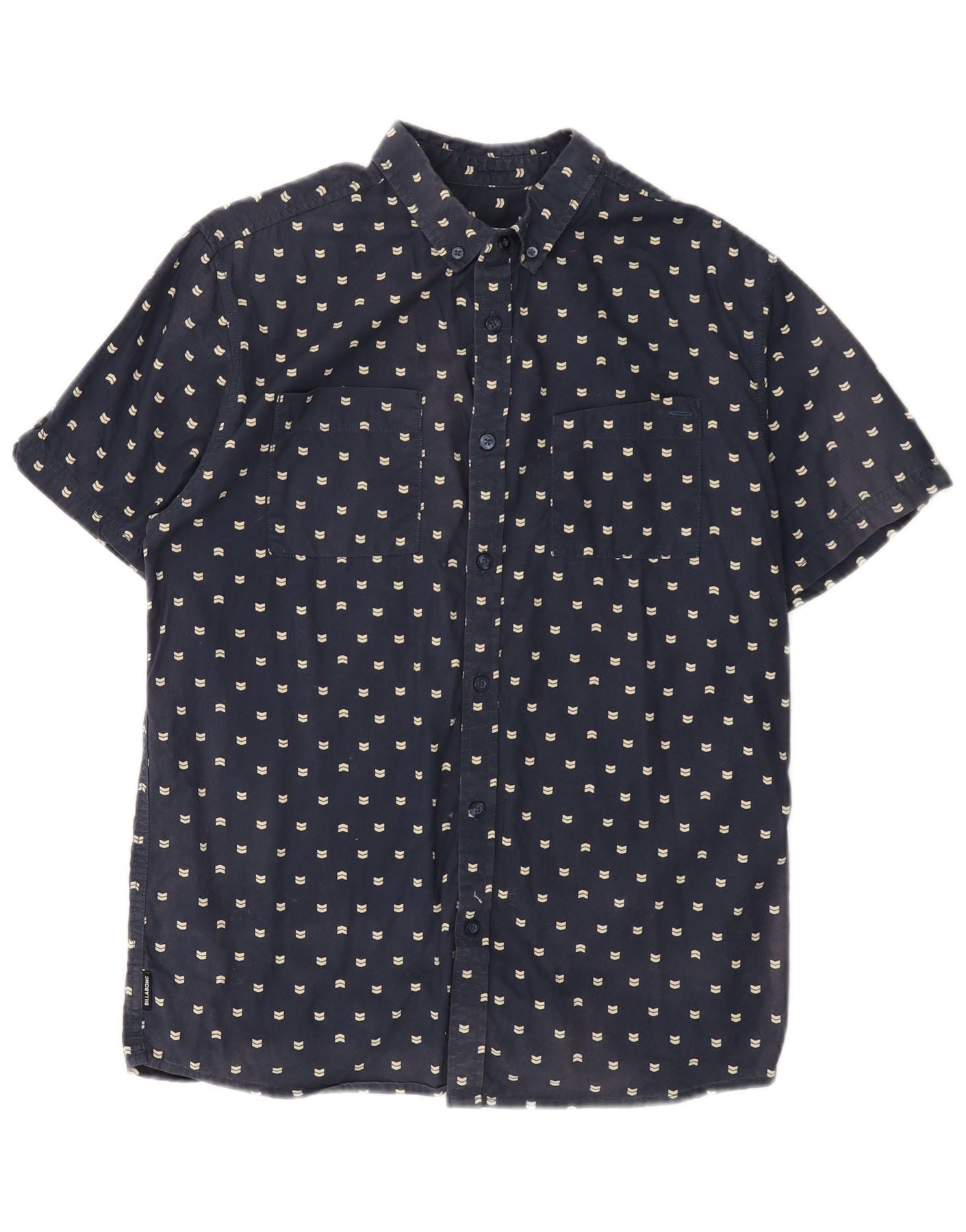 BILLABONG Mens Slim Fit Short Sleeve Shirt Medium Navy Blue Spotted Cotton