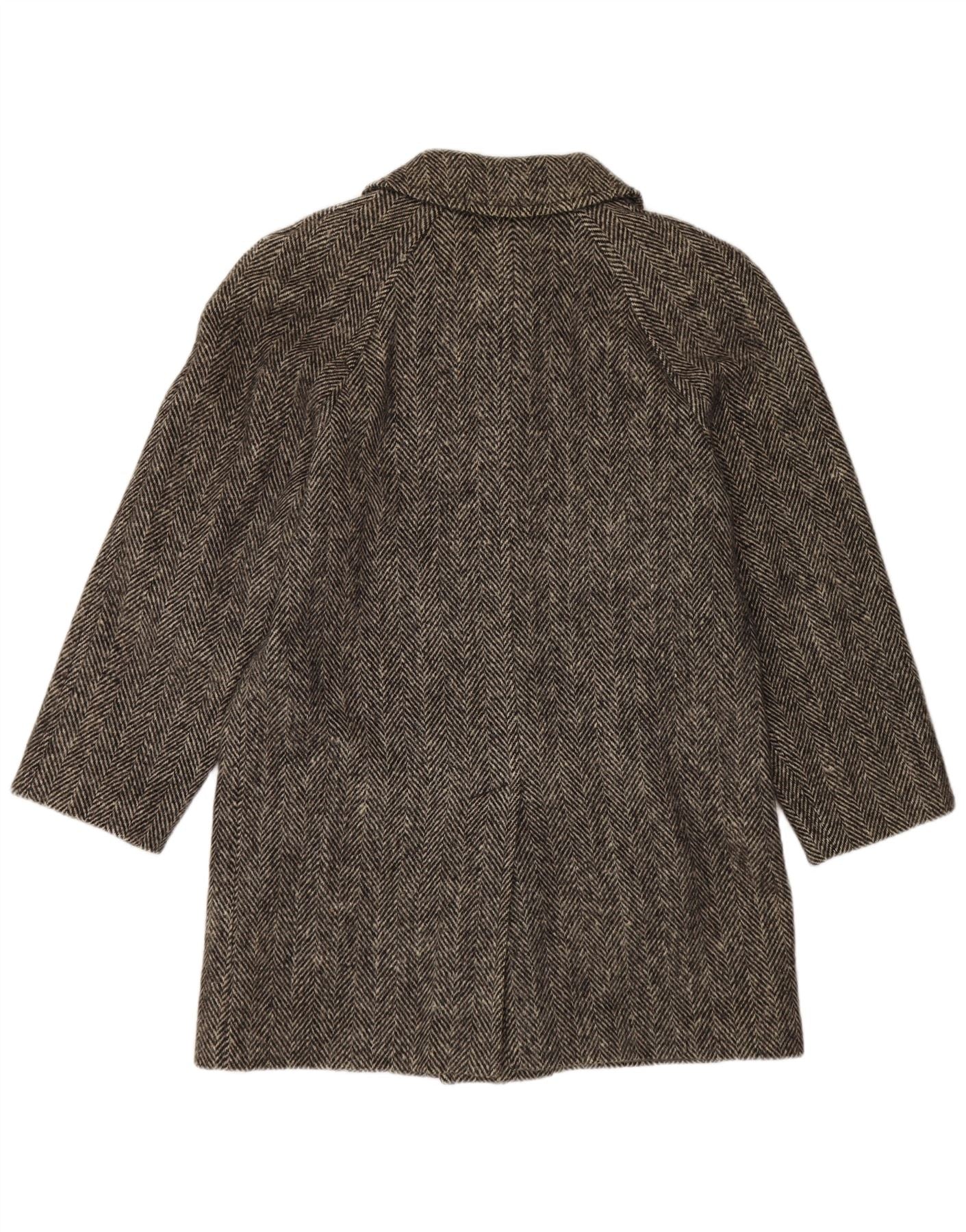 BLUE DEVIL Mens Overcoat UK 38 Medium Grey Herringbone Wool