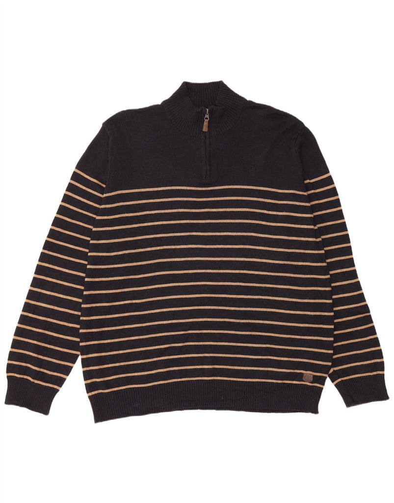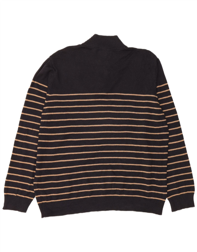 BLUE HARBOUR Mens Zip Neck Jumper Sweater 2XL Black Striped Cotton