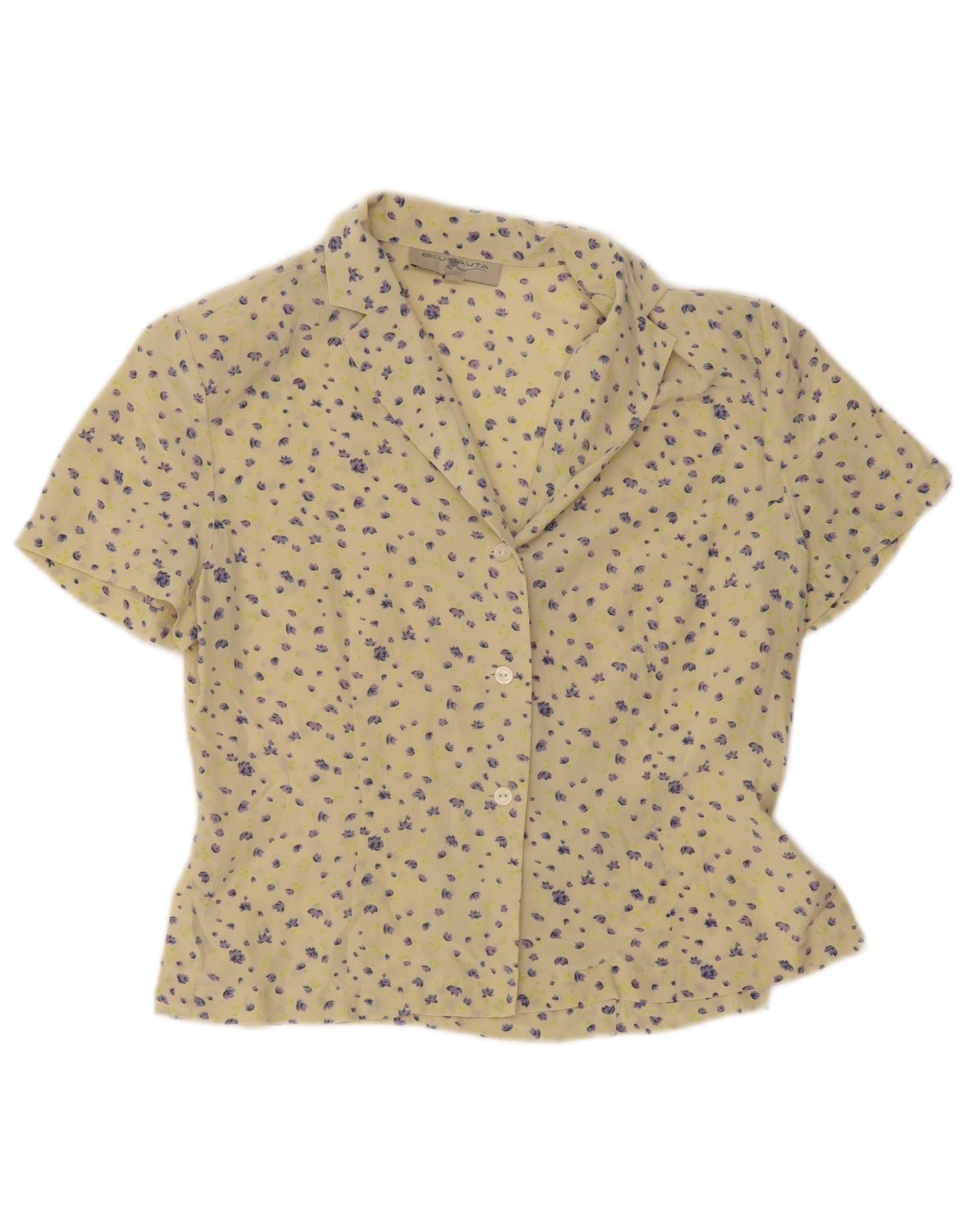Blunauta Womens Short Sleeve Shirt Blouse IT 42 Medium Yellow Floral Silk