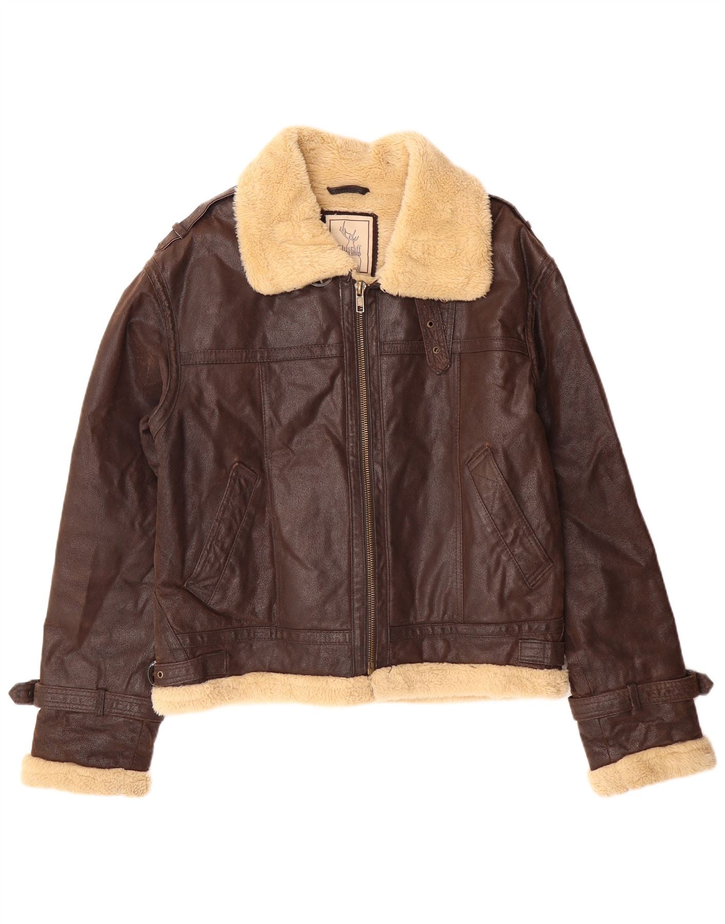 BLUSTAFF Womens Shearling Jacket UK 16 Large Brown Leather