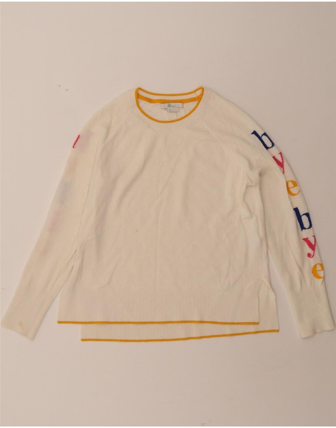 BODEN Womens Graphic Boat Neck Jumper Sweater UK 10 Small White Wool