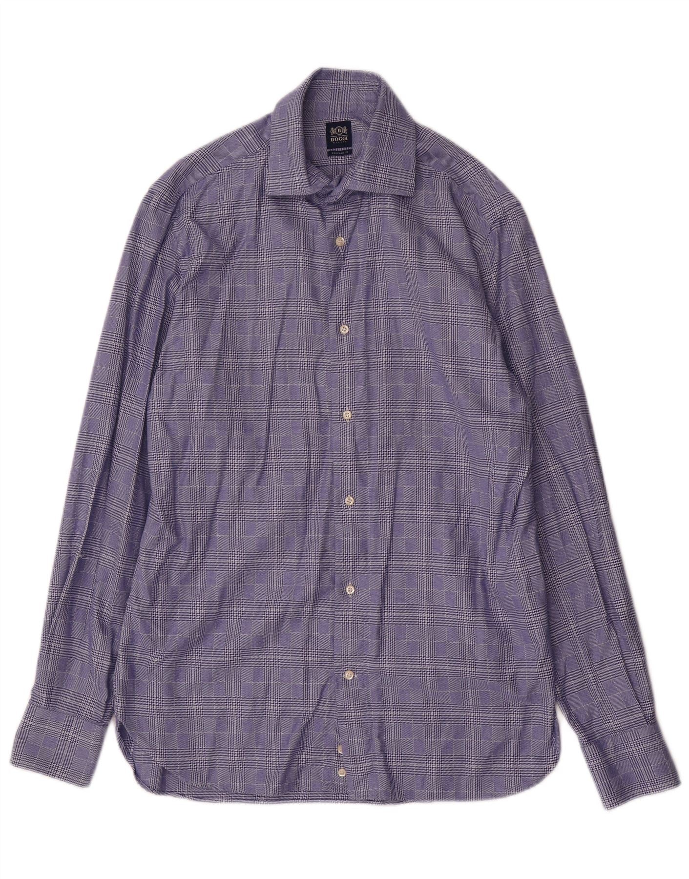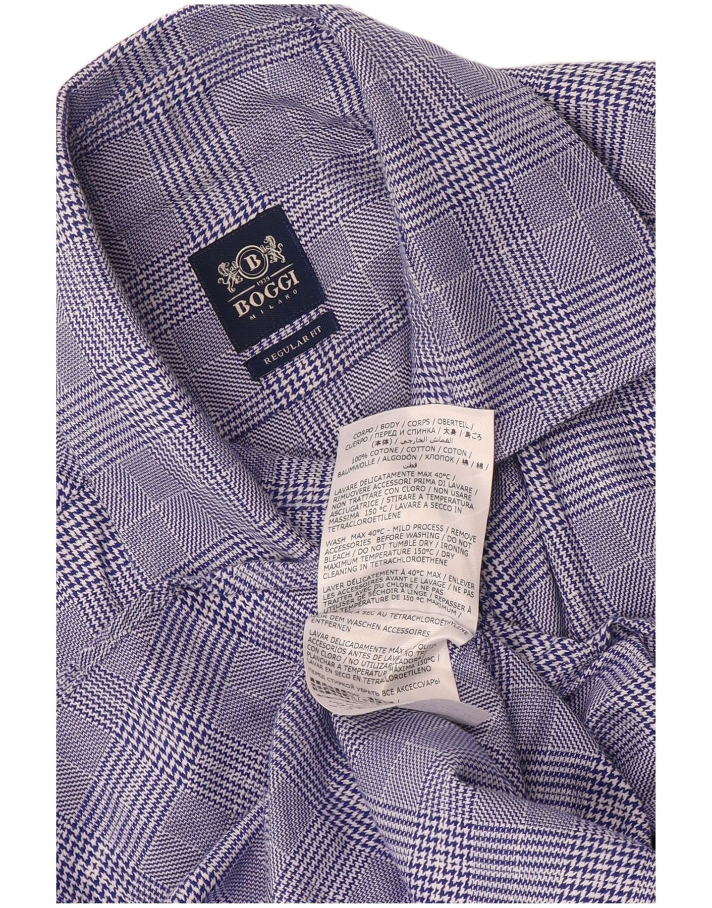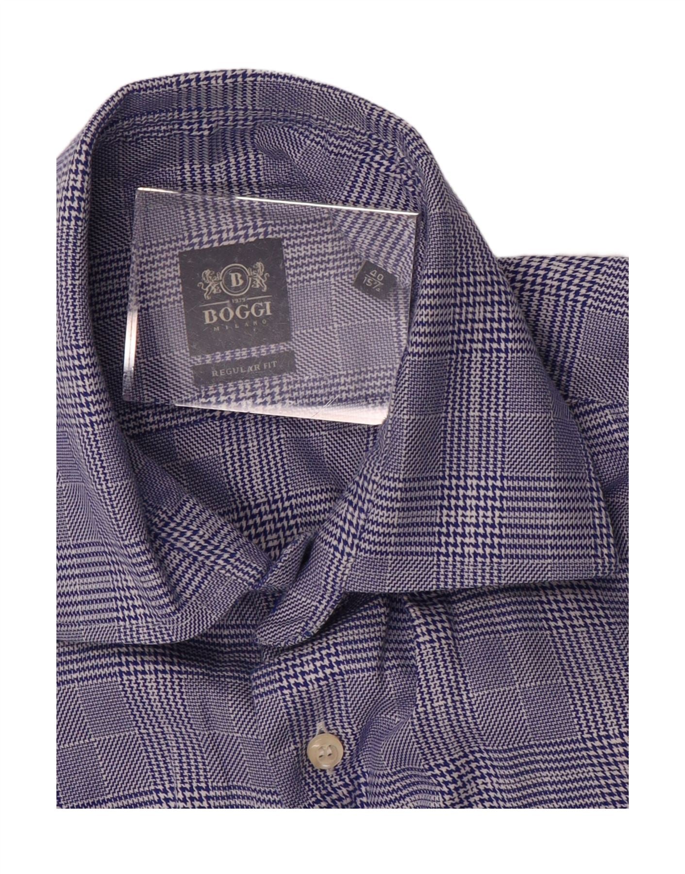 BOGGI Mens Regular Fit Shirt Size 40 15 1/2 Medium Blue Check Cotton