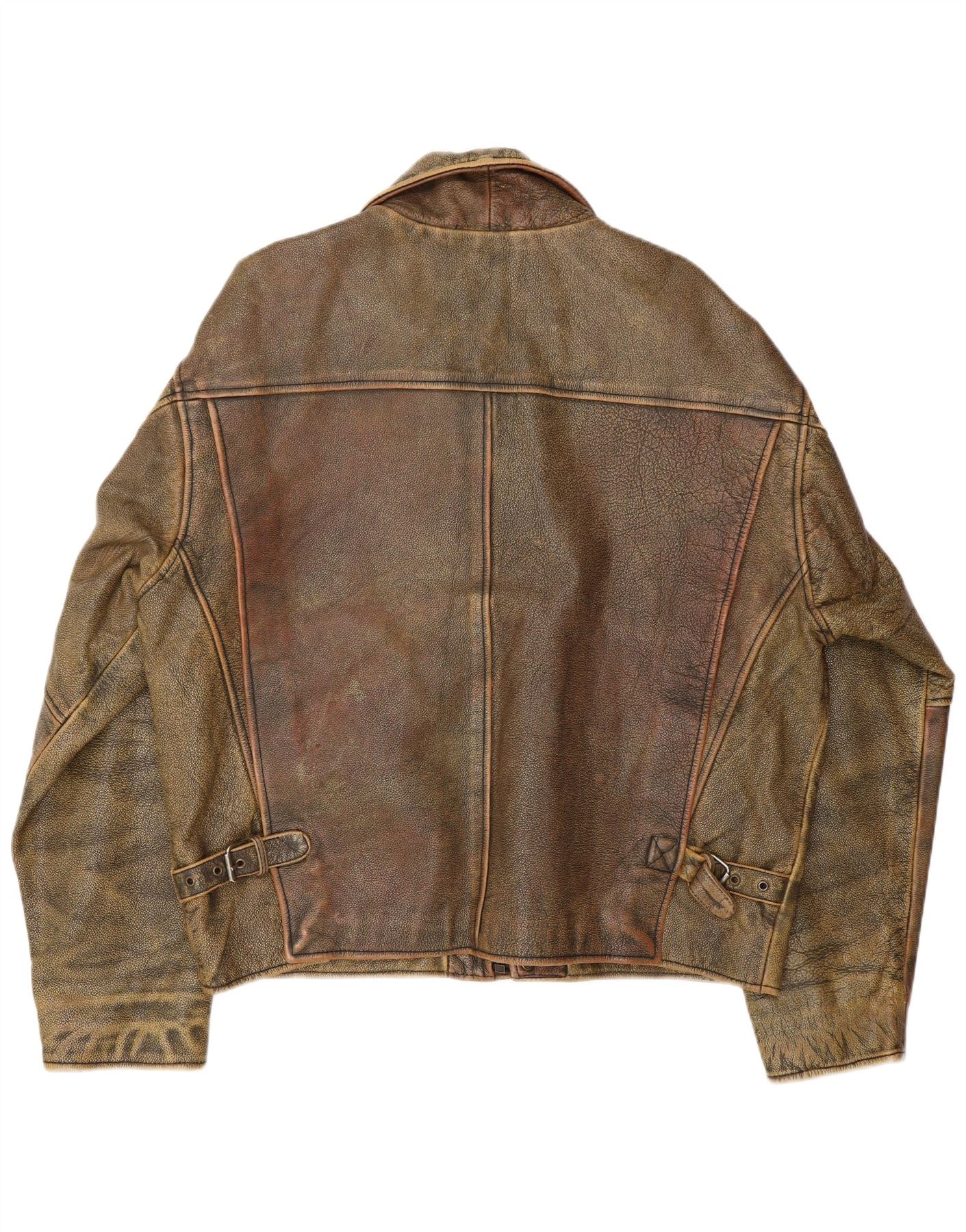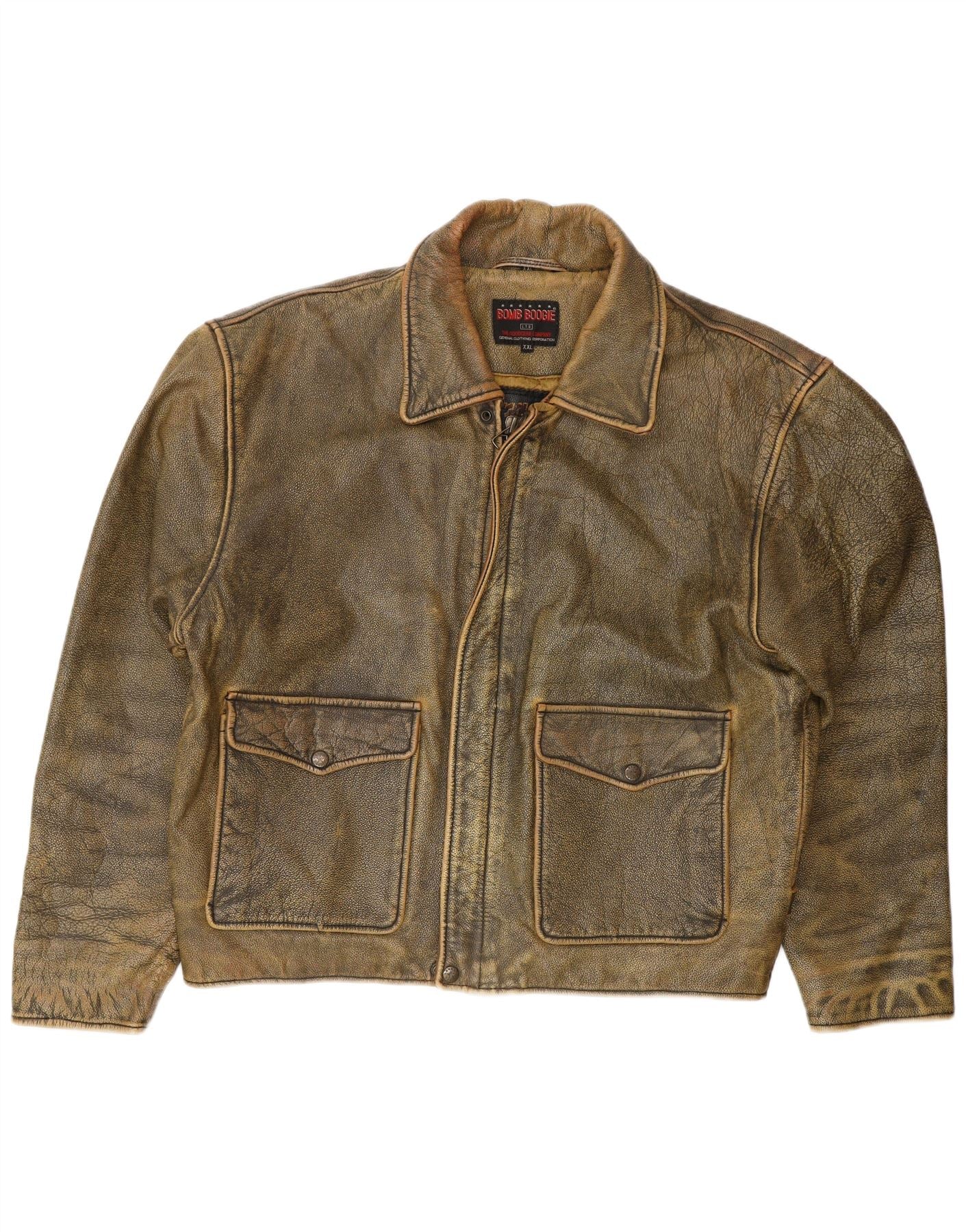 BOMB BOOGIE Mens Leather Jacket UK 44 2XL Brown Leather Biker