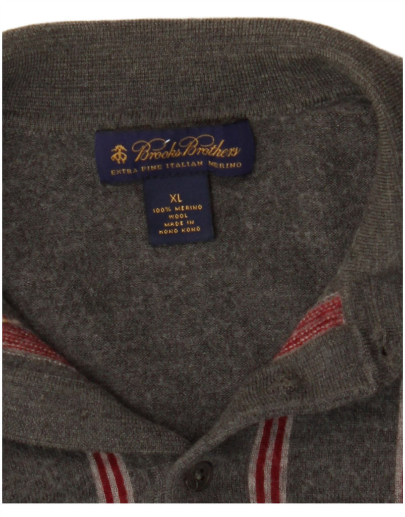 BROOKS BROTHERS Mens Polo Neck Jumper Sweater XL Grey Striped Merino Wool