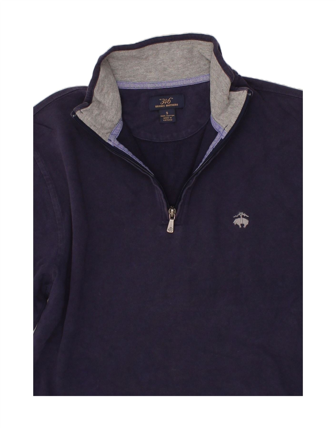 BROOKS BROTHERS Mens Zip Neck T-Shirt Top Small Navy Blue Cotton
