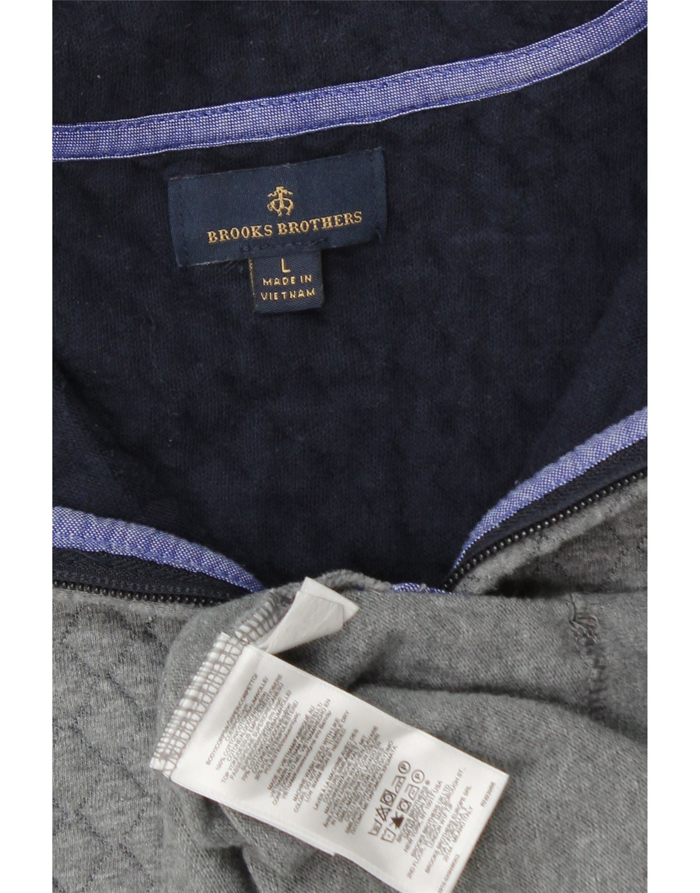 Brooks Brothers Mens Zip Neck Top Long Sleeve Large Grey Cotton