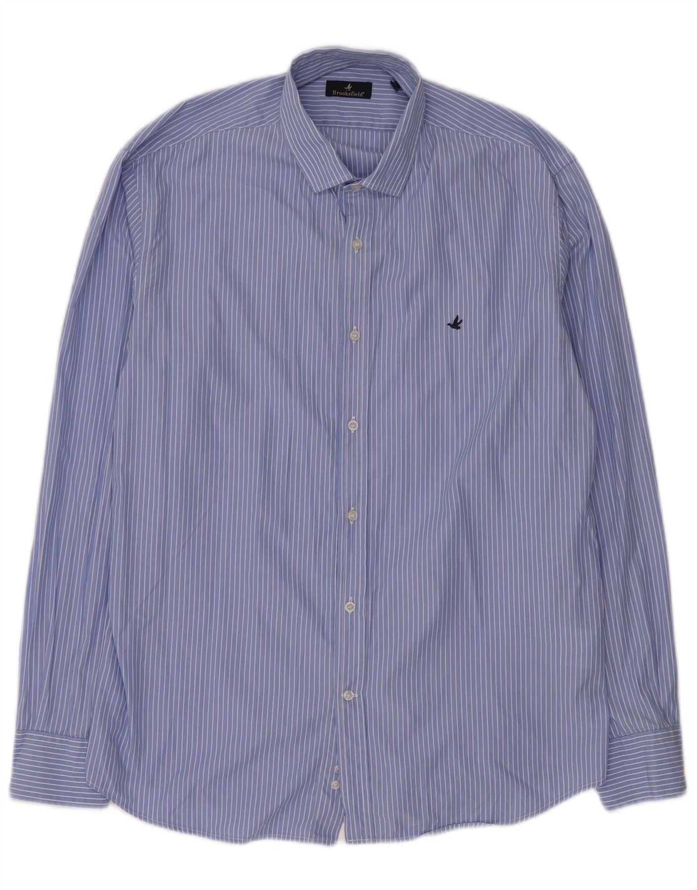 Brooksfield Mens Shirt Medium Blue Pinstripe Cotton Classic