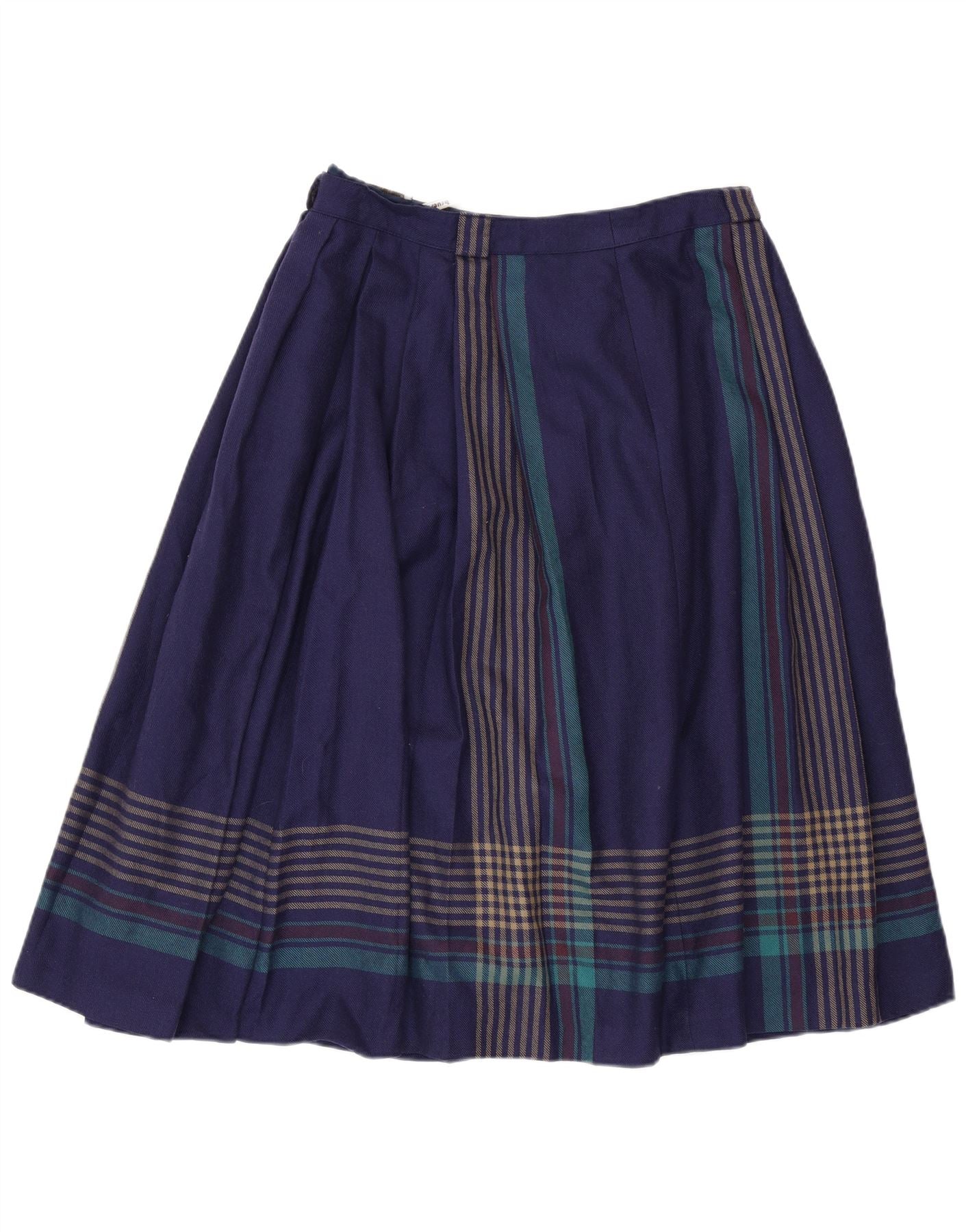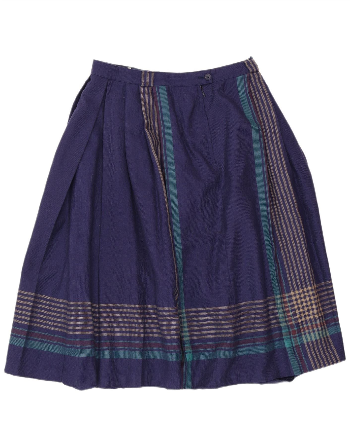 BRUESTLE Womens Pleated Skirt EU 42 Large W30 L28 Navy Blue Striped Wool